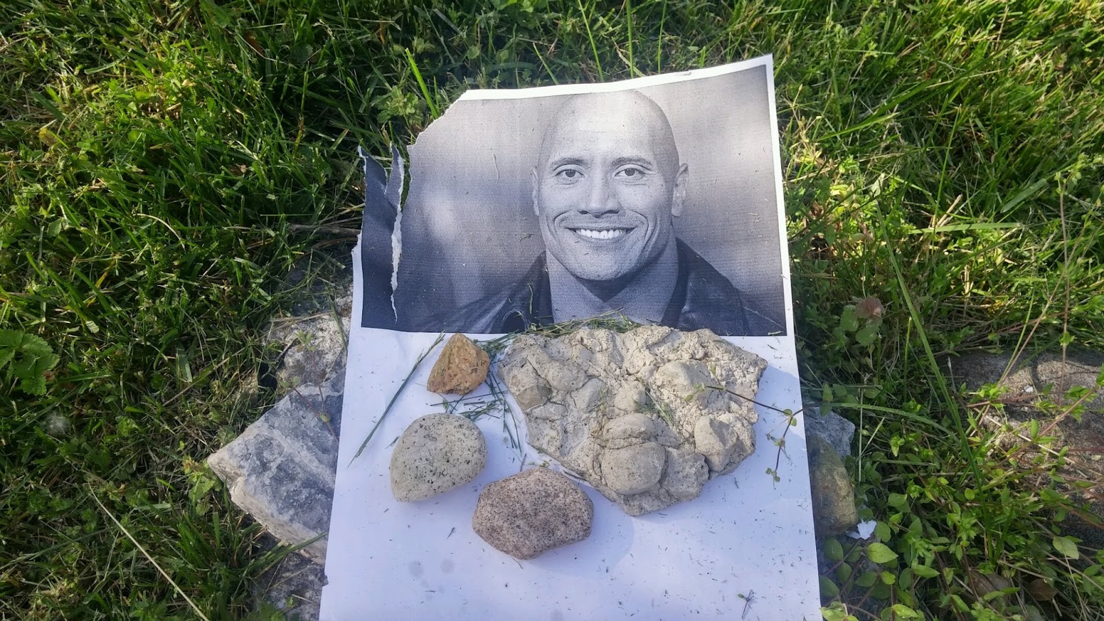 So for some reason I woke up this morning and found The Rock sandwiched between some rocks in my front yard..