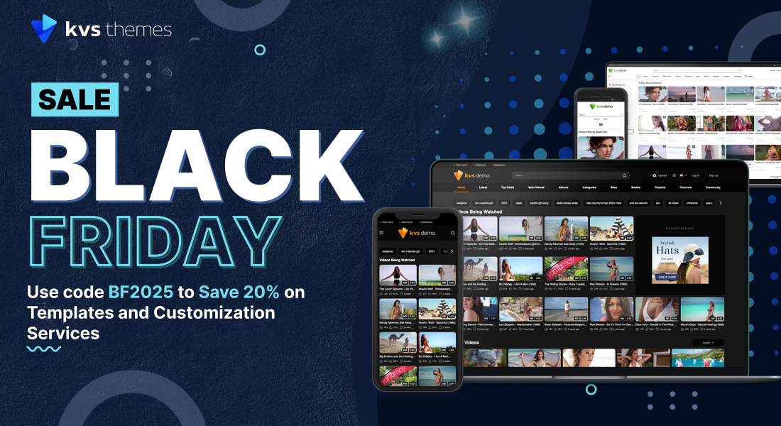Get ready for incredible Black Friday savings at KVS Themes, where you’ll find top-tier Kernel Video Sharing templates at discounted prices. Take advantage of our BF2025 promo code and enjoy 20% off all templates in our store: