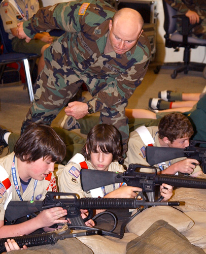 ![]() ![]() I used to shoot real guns with live ammo when I was in the Boy Scouts. So to suggest that Boy Scouts only shoot BB guns to get their Rifle and their Shotgun merit badges is absolutely incorrect. I was simply pointing to the folly of your post, since any photo of kids holding guns can be misinterpreted, and propaganda is fabricated and used all the time to manipulate public opinion by demonizing the enemy. Example: Quote: