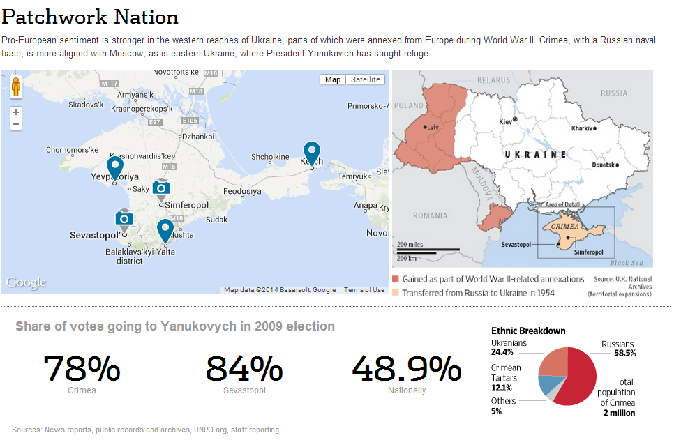 What is interesting is that at first, there was so called Rambouillet "Agreement" that was actually document put in front of Serbs that give country to NATO (classic occupation where foreign military wont pay for use of land or frequencies, or will be under state law and will have freedom to do whatever want on Serbian soil) . That was not agreement but ultimatum that Serbs couldn't accept even if they need to go to war with so much stronger NATO army. (The Rambouillet text, which called on Serbia to admit NATO troops throughout Yugoslavia, was a provocation, an excuse to start bombing. Rambouillet is not a document that an angelic Serb could have accepted. It was a terrible diplomatic document that should never have been presented in that form.[4] ?Henry Kissinger, Daily Telegraph, 28 June 1999 ) So thousands of soldiers were killed all over country and even bigger number of civilians as retaliation for military succeeded to maintain border and wasn't defeated after months of bombing and attempts to invade country from Albania (yes there was open ground invasion from there. In short, blod, horror,devastation of complete country and ethnic cleaning of all non albanian citizens was ok for west. Compare that shit to Crimea and situation there where no single bullet was fired. 2 days ago, was 10 year anniversary of last big ethnic cleaning in Kosovo. All those Serbs (and other non albanians) that left and were not cleaned during NATO war, were now finally expelled and houses and churches burned. Guess what..in the middle of the europe,with EU /NATO tropps on ground that should protect people. What a joke... After things like this,only idiot and complete fool will have and trust in what EU/WEST sign or say. Just like they signed agreement with Yanukovich last month,and without any problem, ignored it few days ago stopped mentioning it. When we take all this in consideration,it would be real miracle that it will stop on Crimea. |