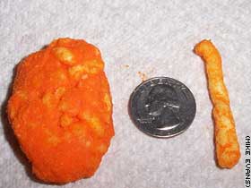 It's believed to be the largest Chee-to in the world. The cheesy glob of fried cornmeal that Navy Petty Officer Mike Evans found last week in a bag of the snacks is about the size of a small lemon and weighs in at about half an ounce.
