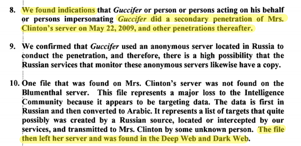 Supposedly "Guccifer" was in Hillary's server all along