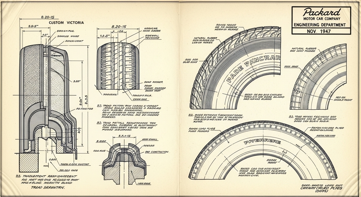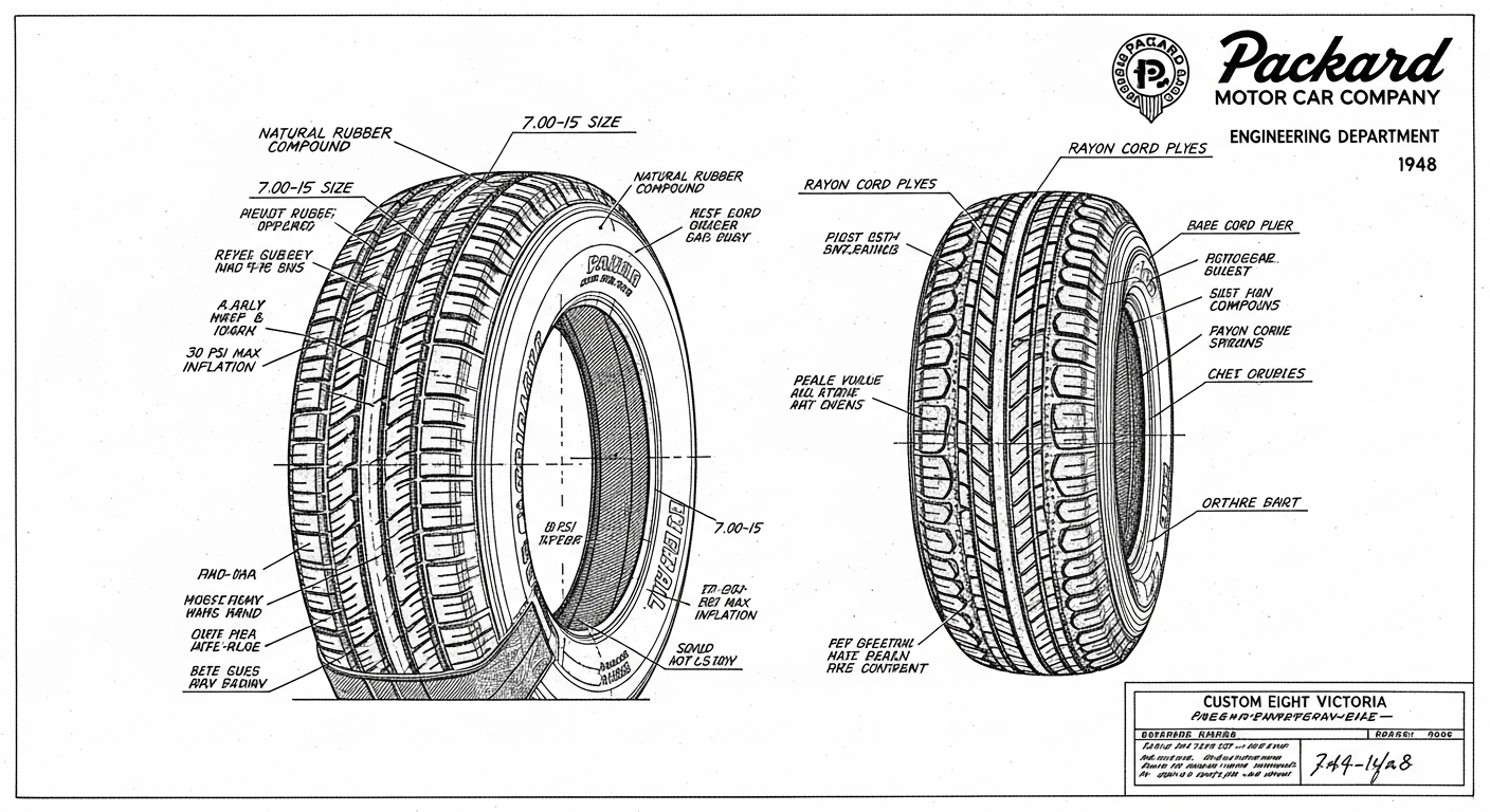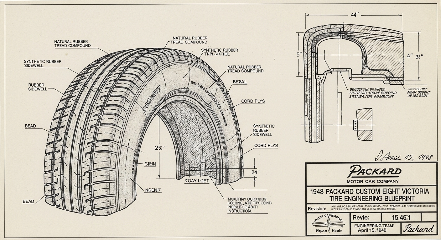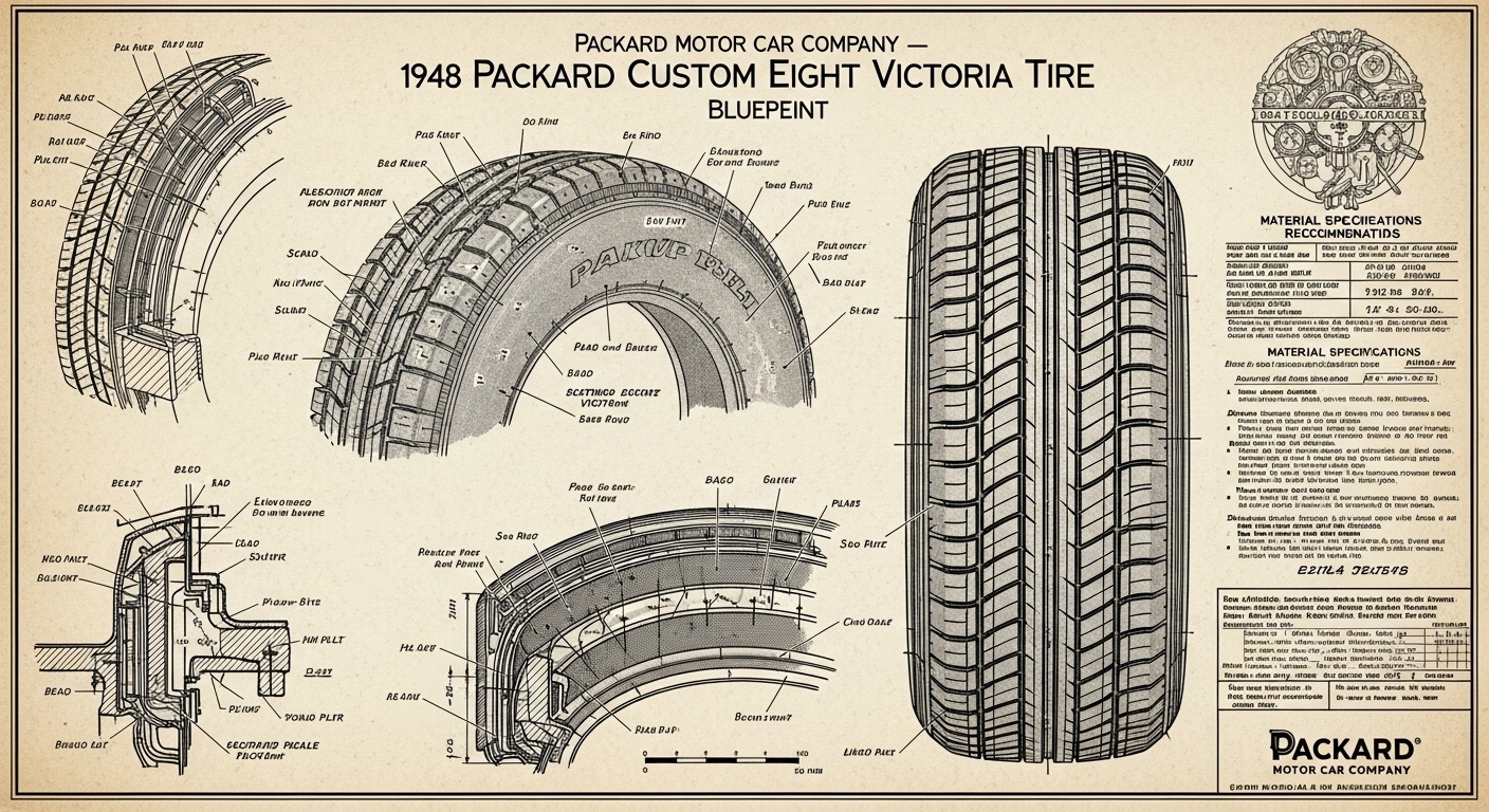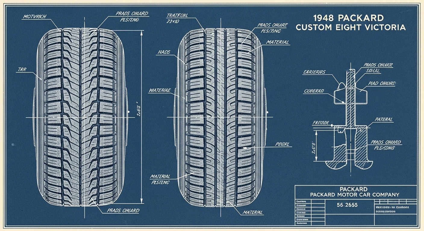 A.I. cars & engines 1948 Packard Custom Eight Victoria tire engineering blueprints