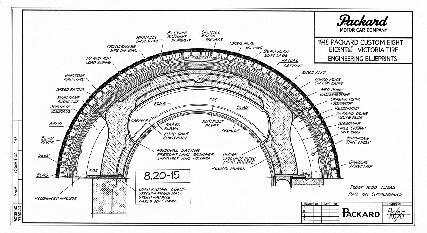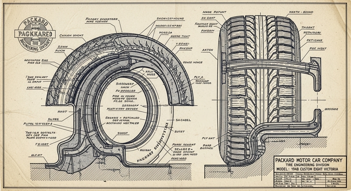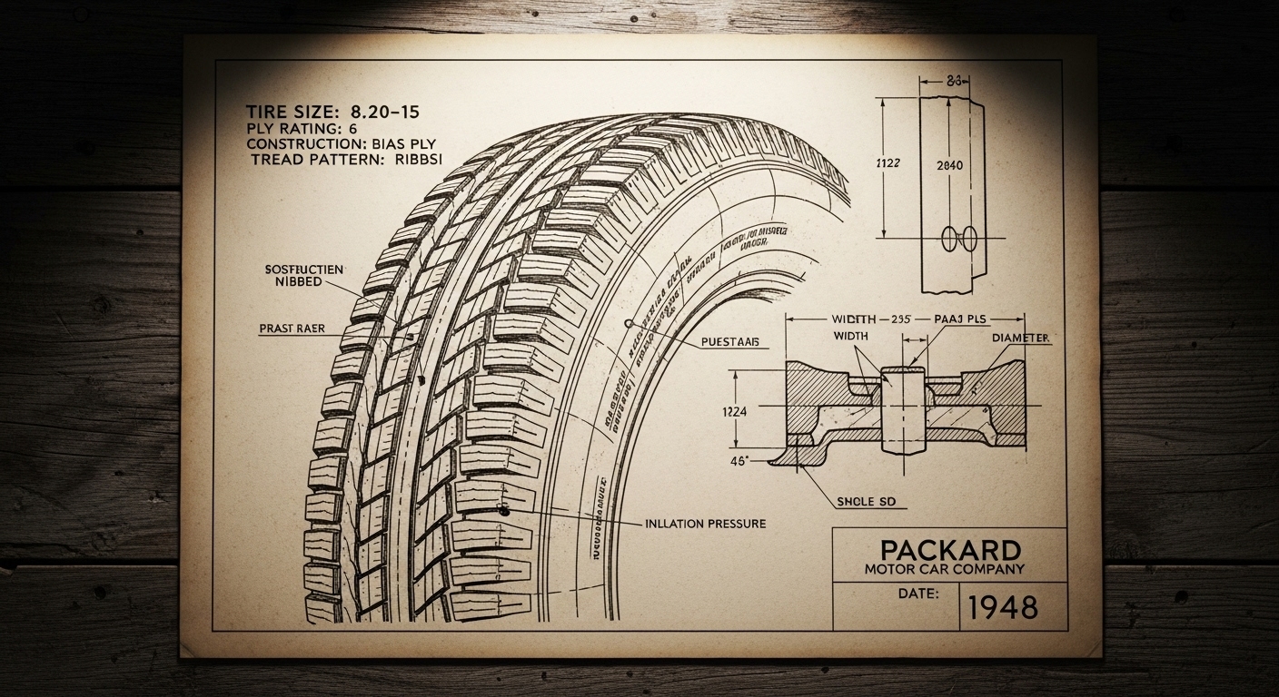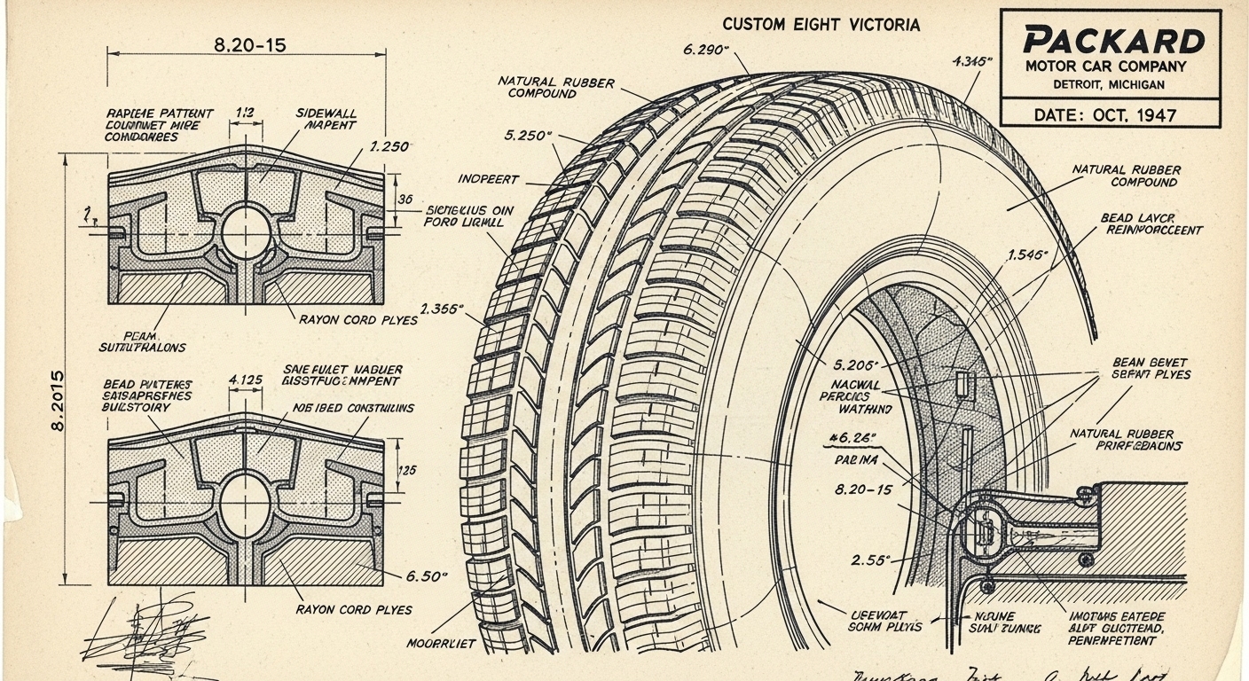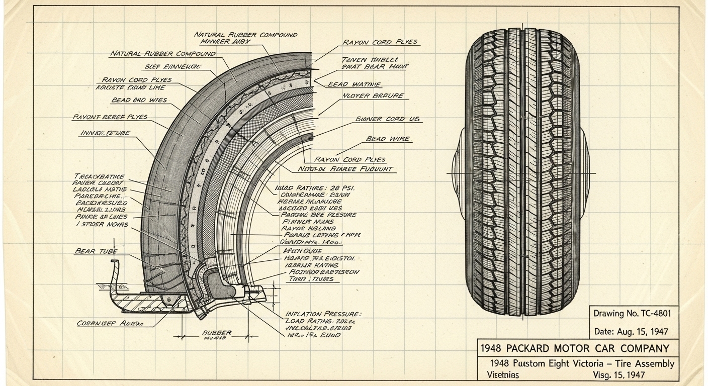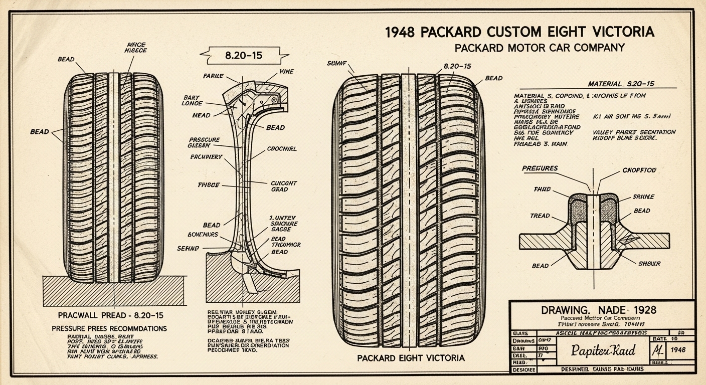 A.I. cars & engines 1948 Packard Custom Eight Victoria tire engineering blueprints