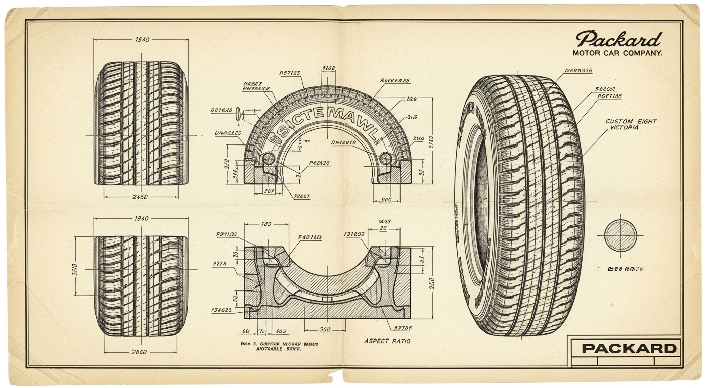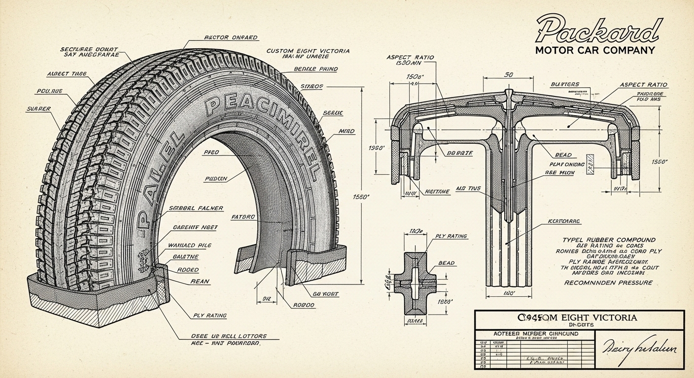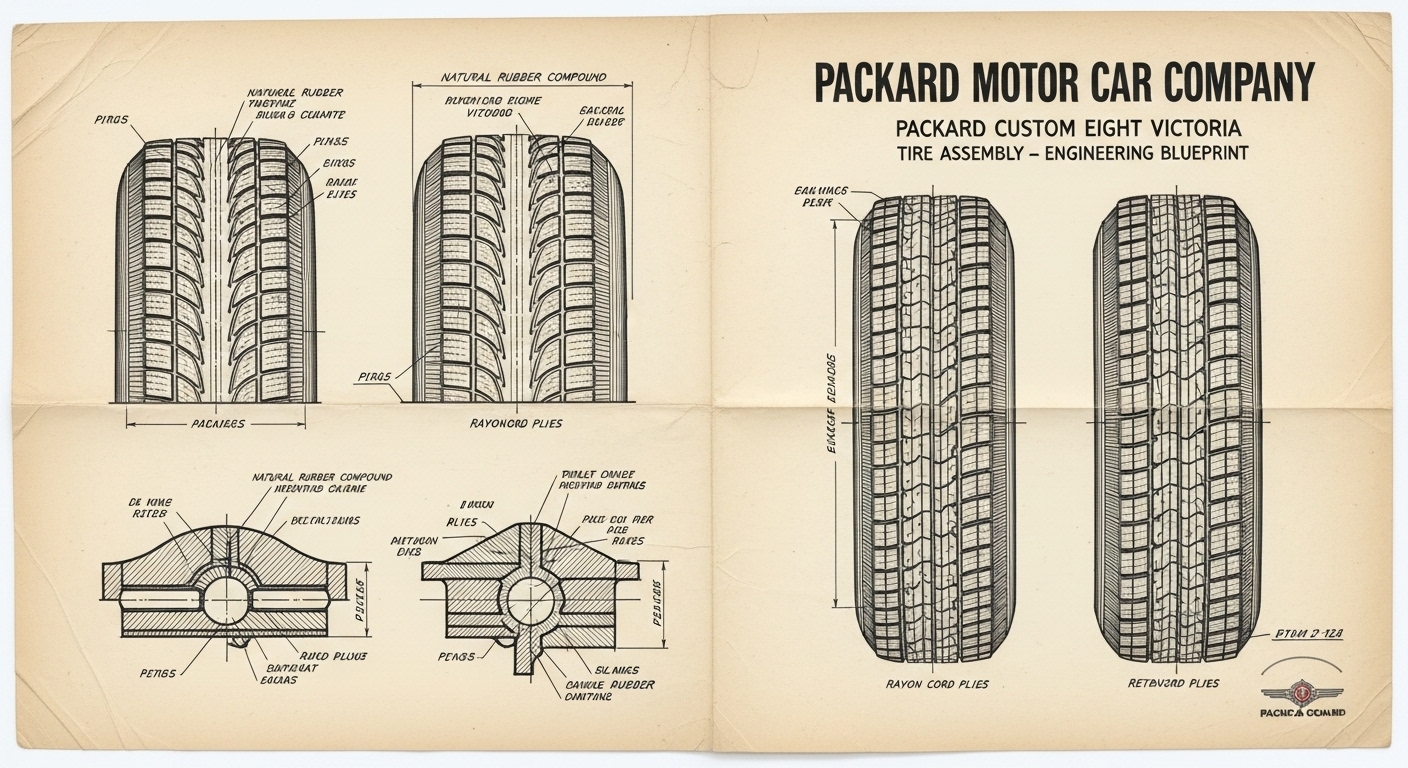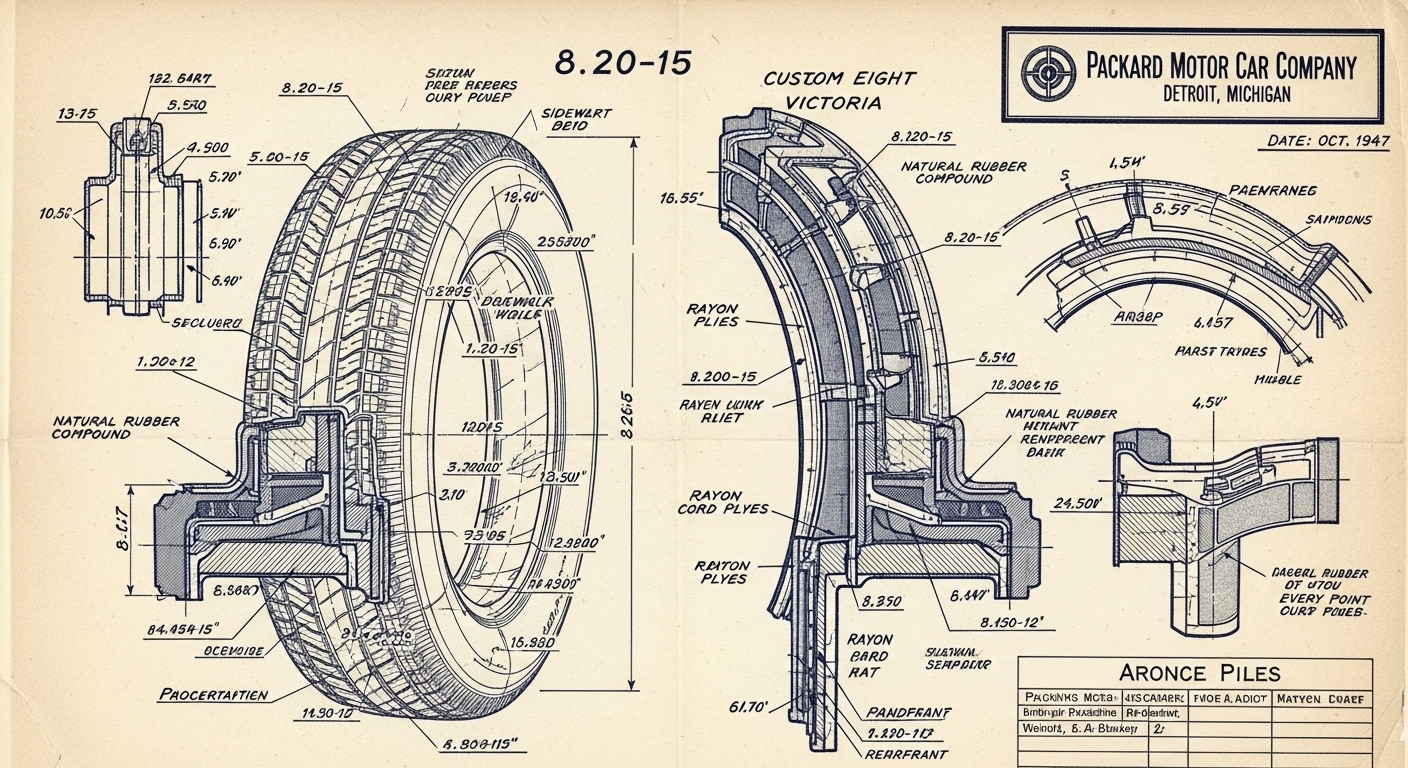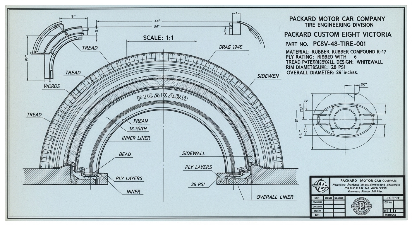 A.I. cars & engines 1948 Packard Custom Eight Victoria tire engineering blueprints
