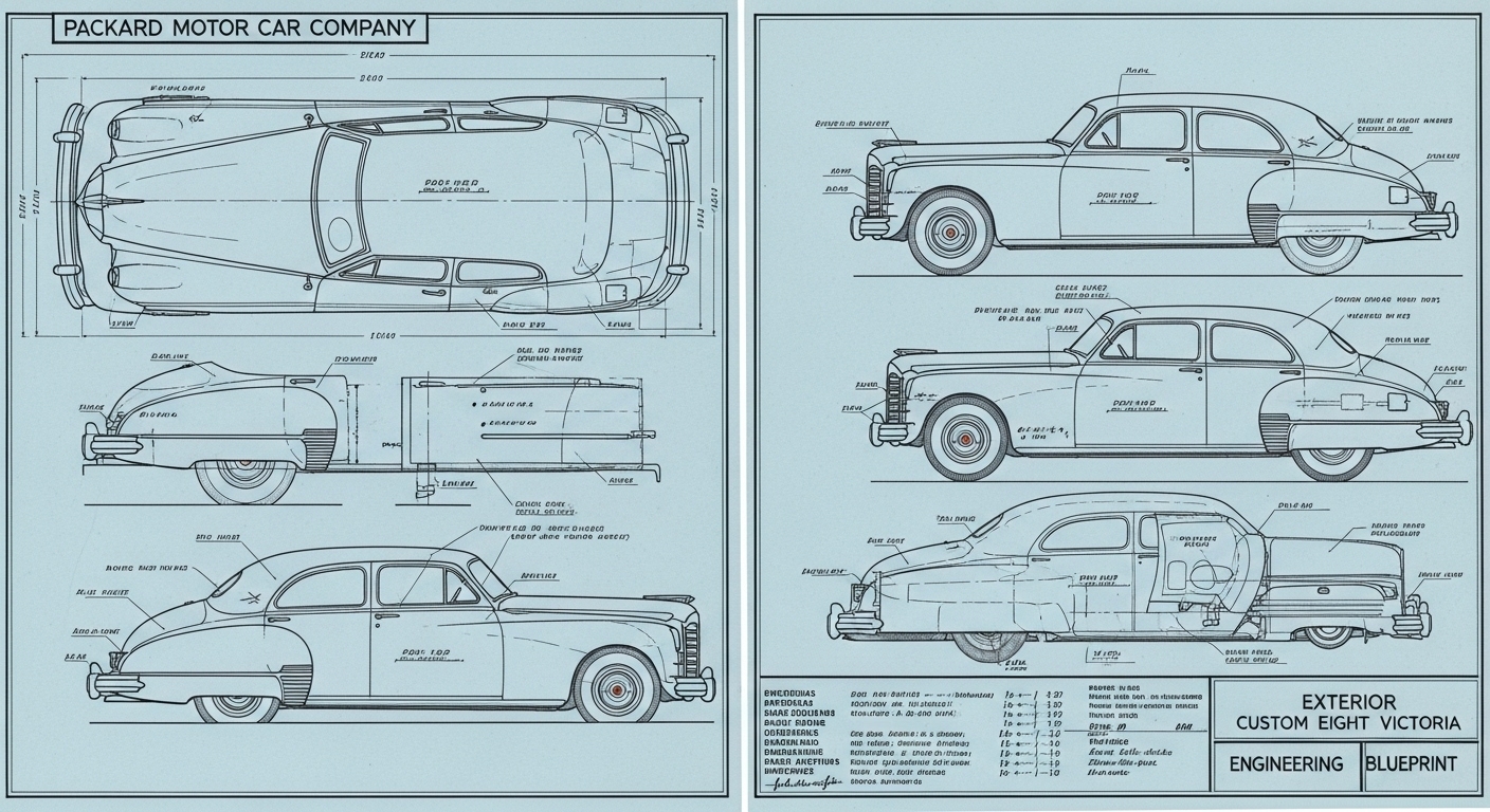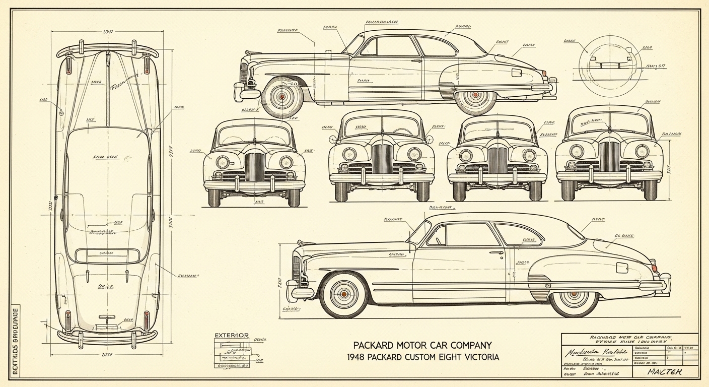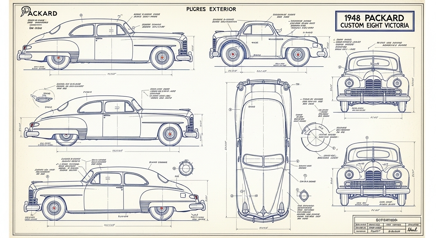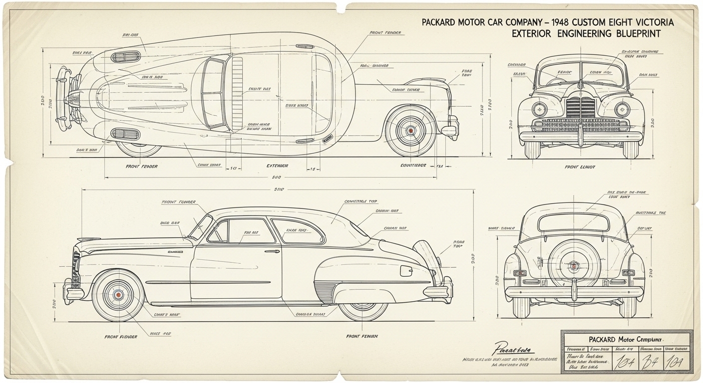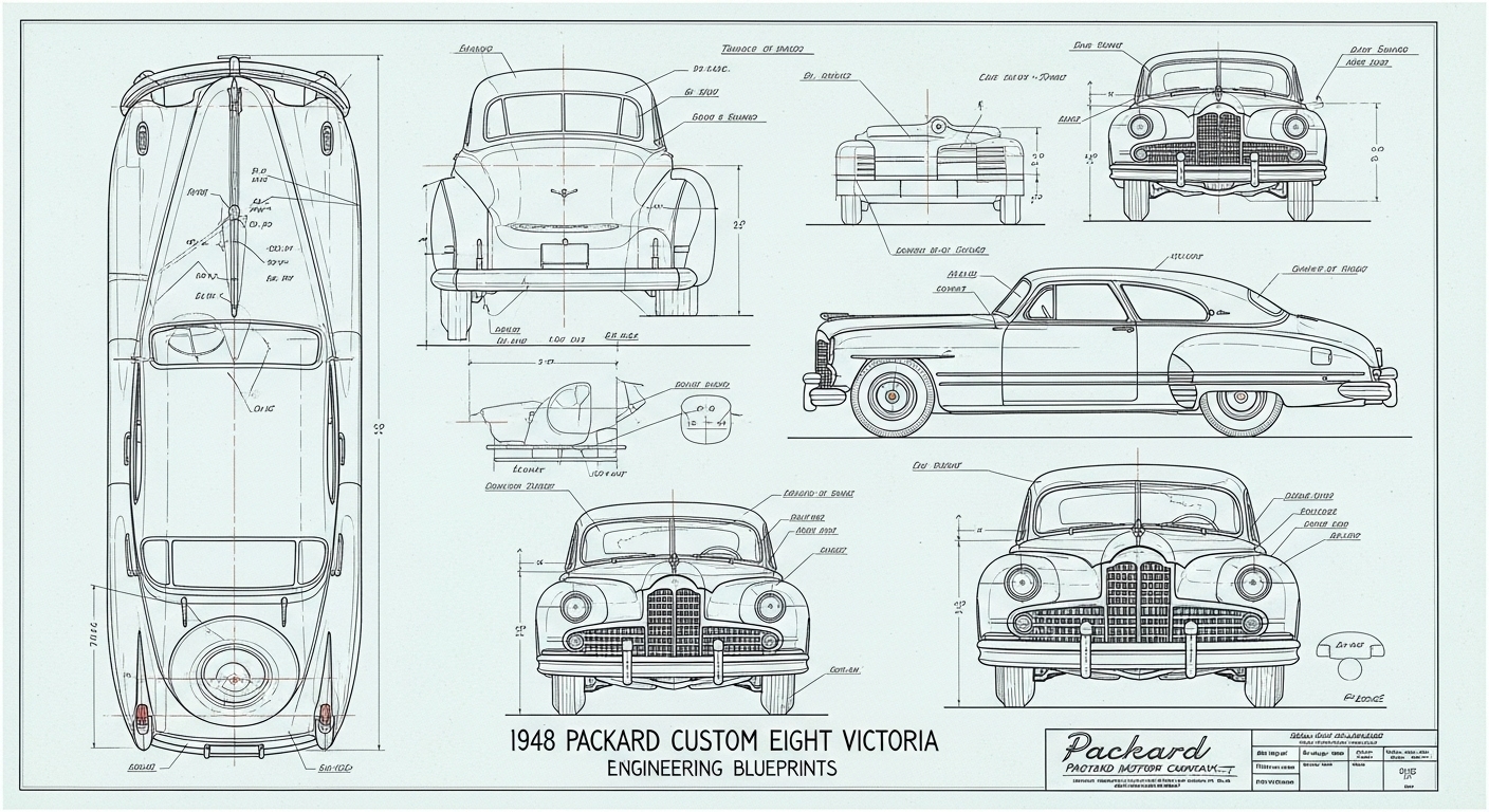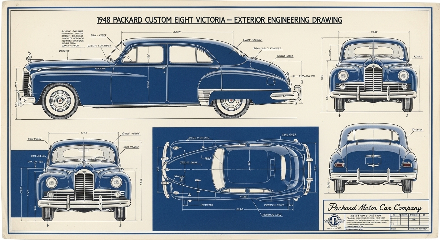 A.I. cars & engines 1948 Packard Custom Eight Victoria exterior engineering blueprints