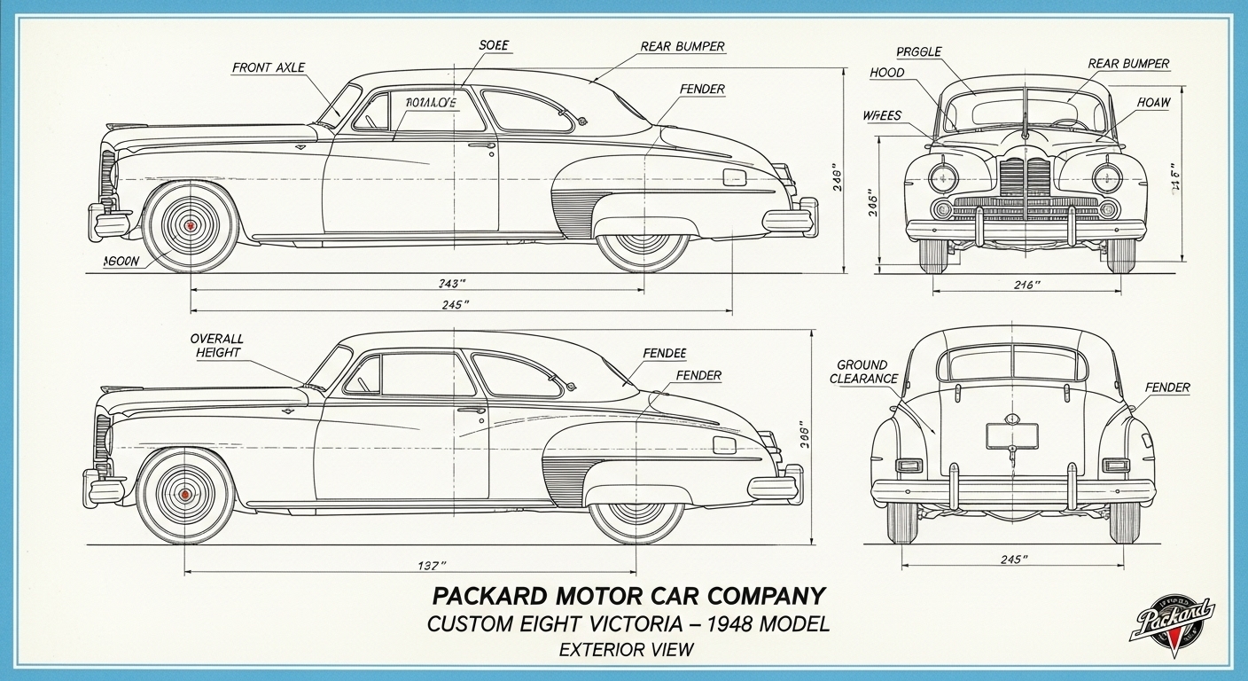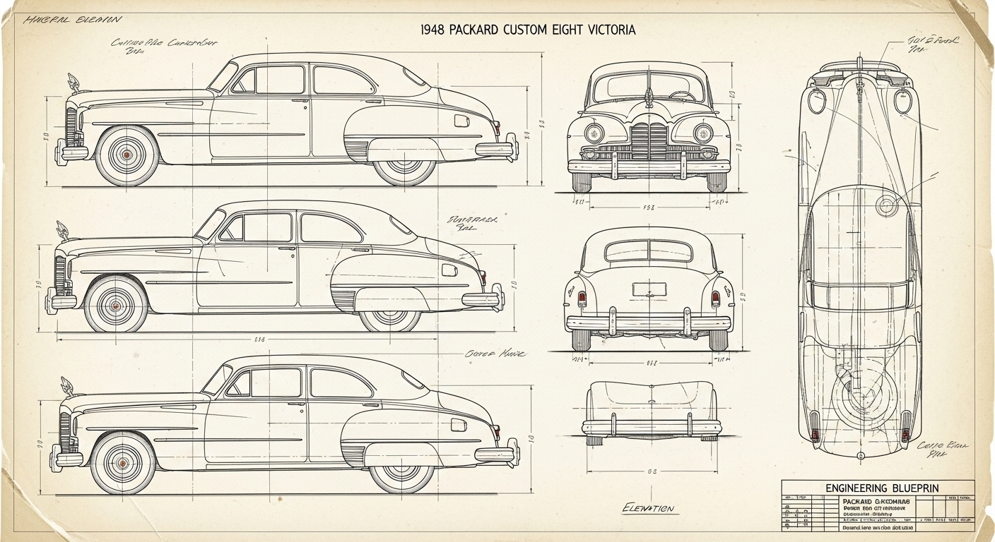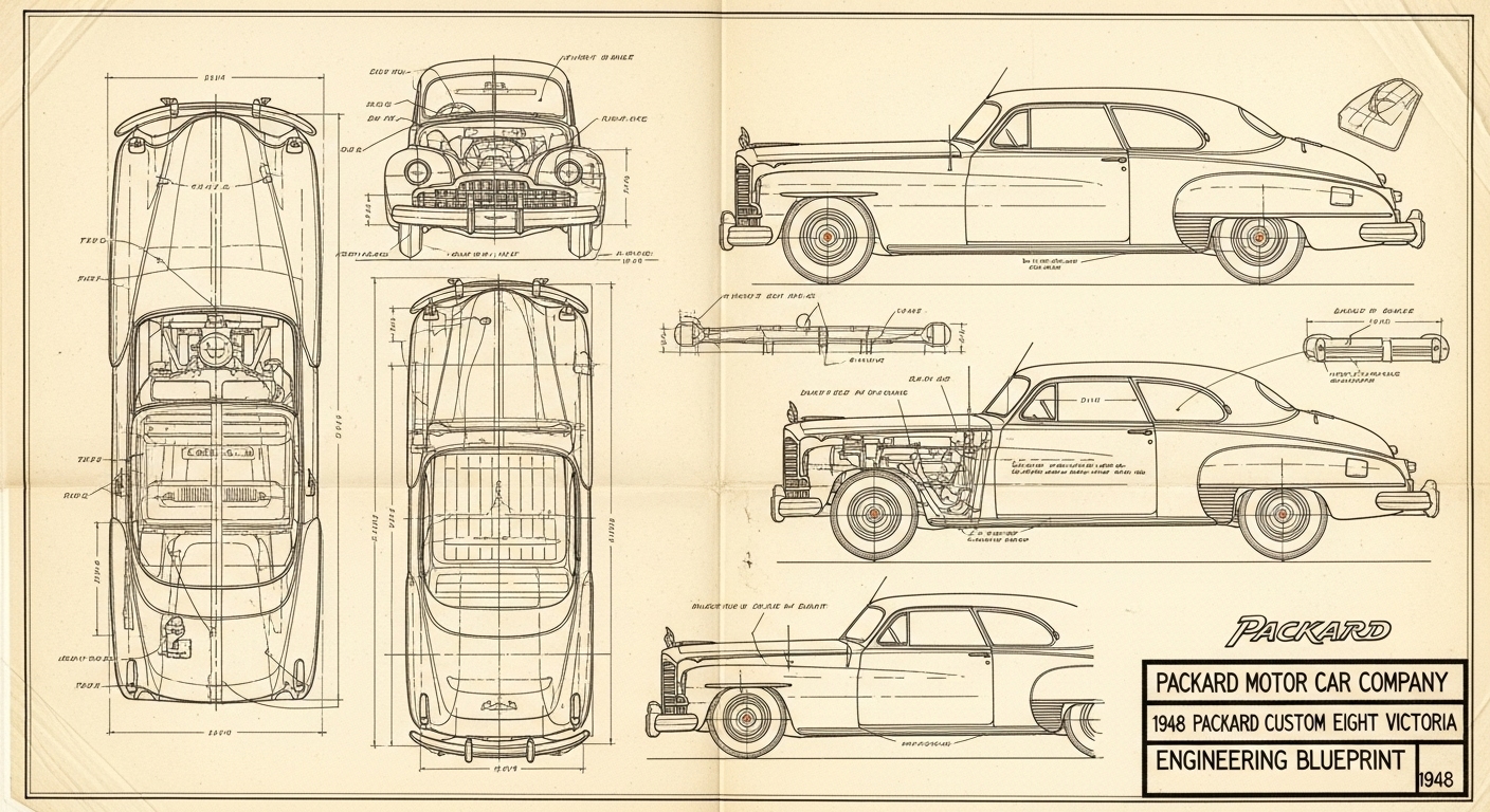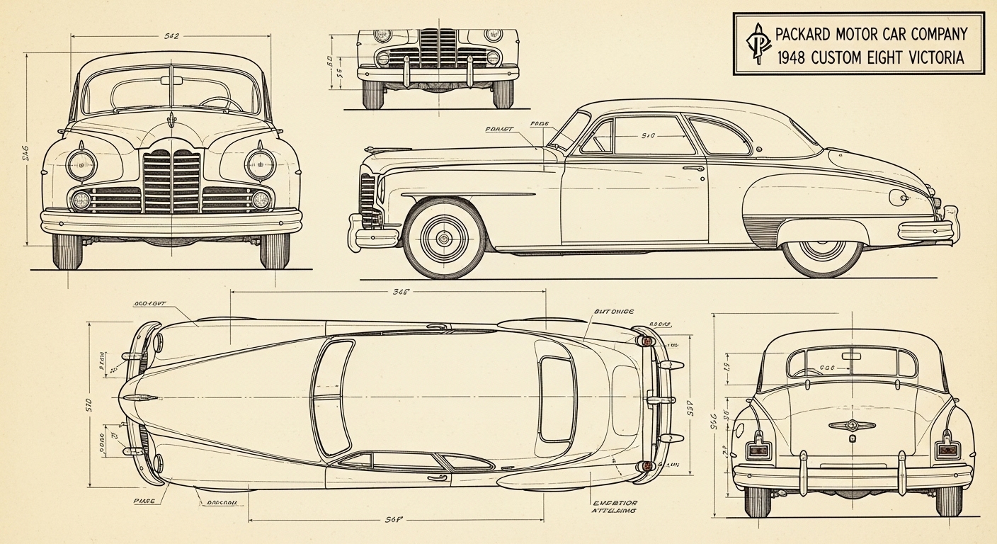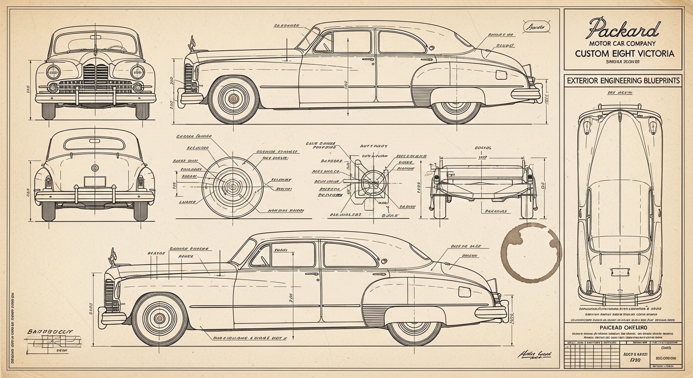 A.I. cars & engines 1948 Packard Custom Eight Victoria exterior engineering blueprints