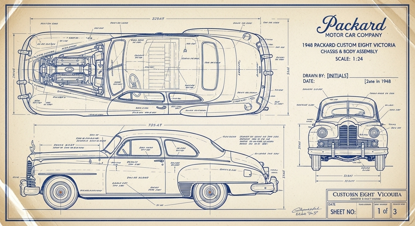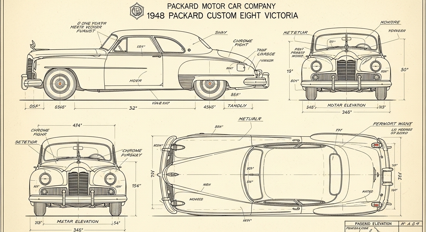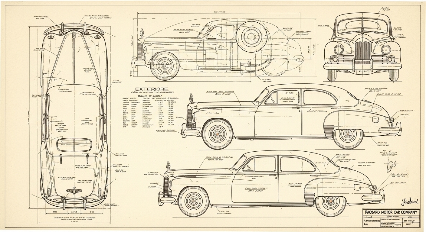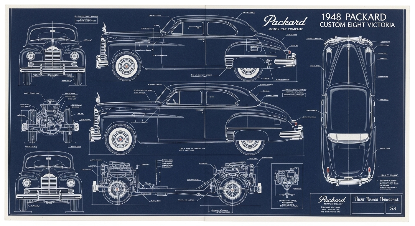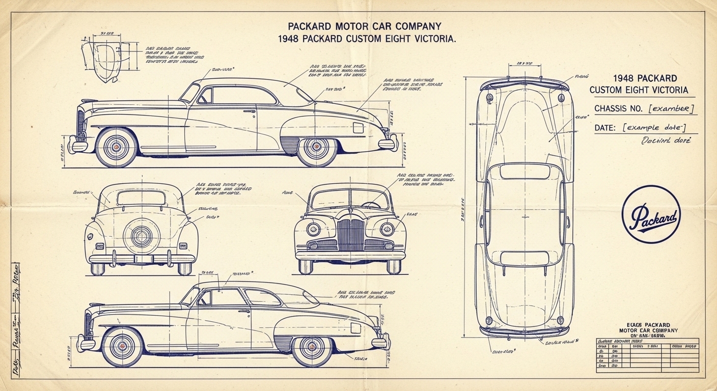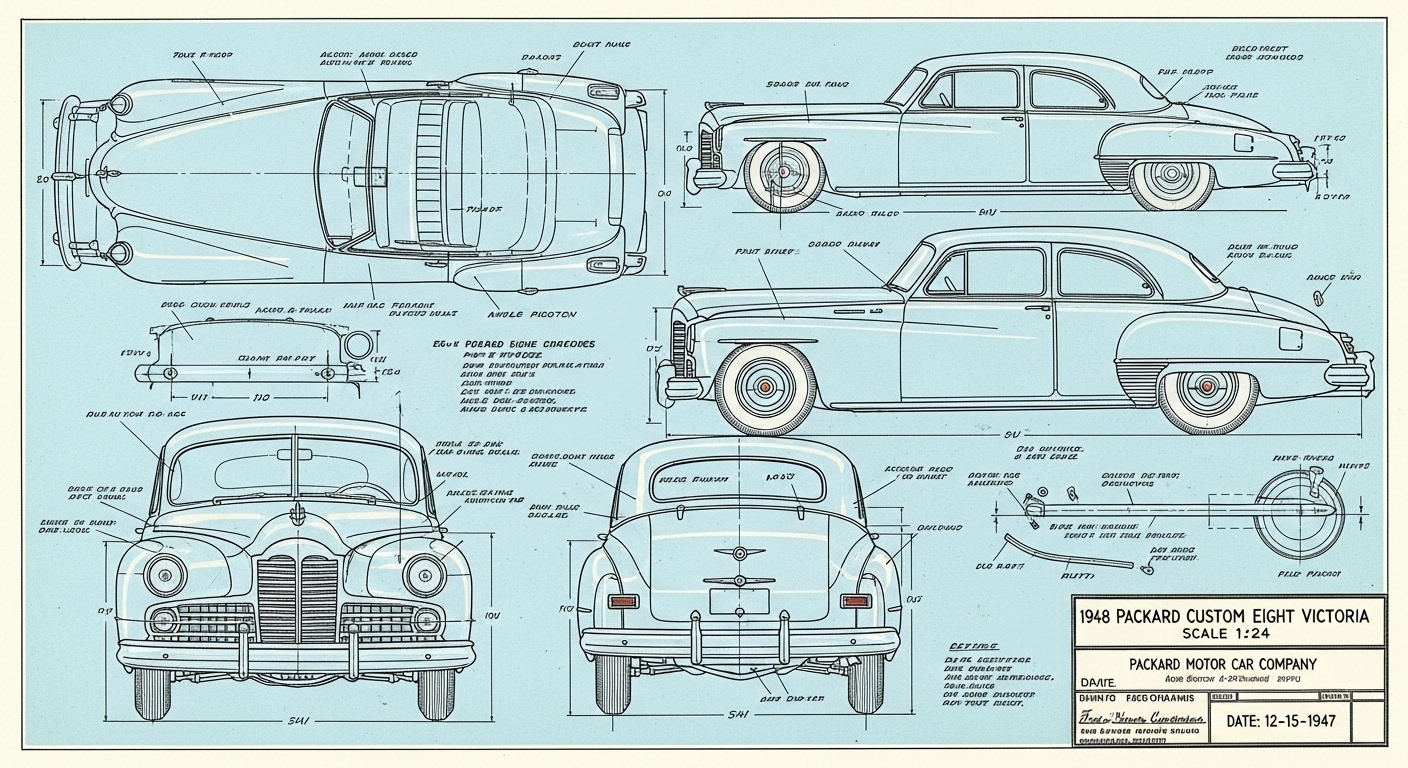 A.I. cars & engines 1948 Packard Custom Eight Victoria exterior engineering blueprints