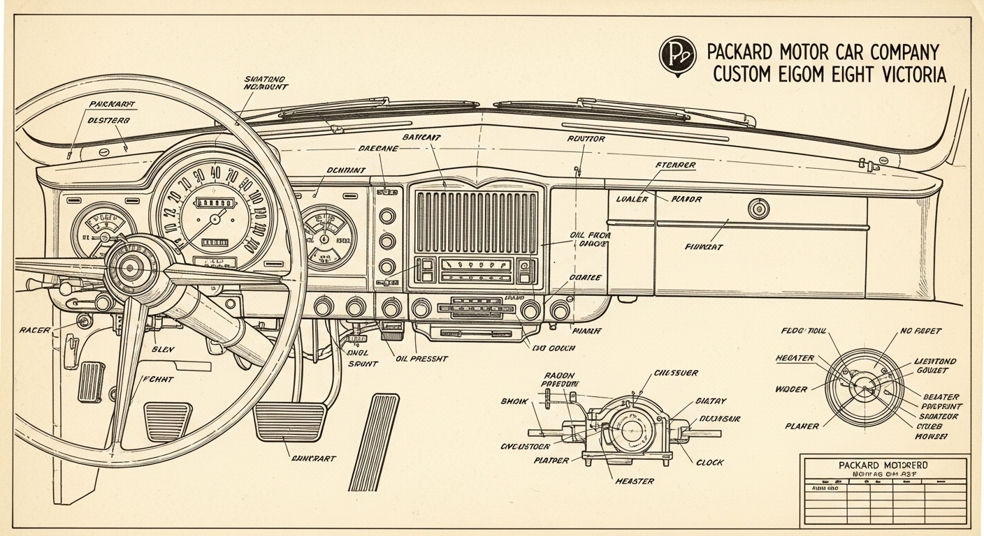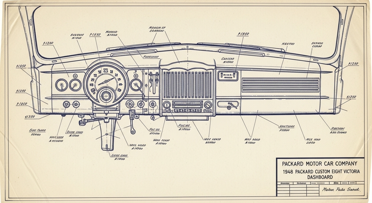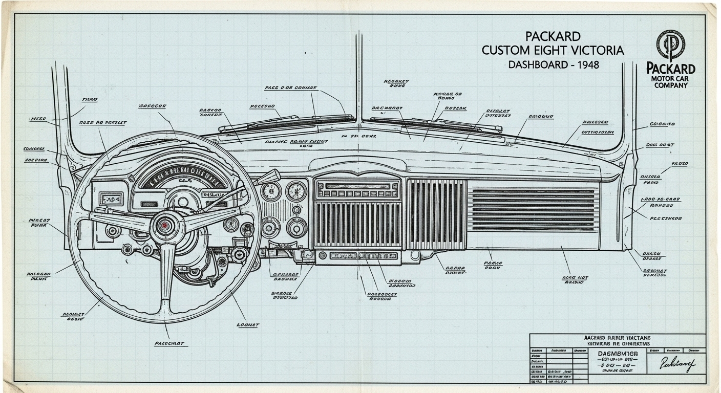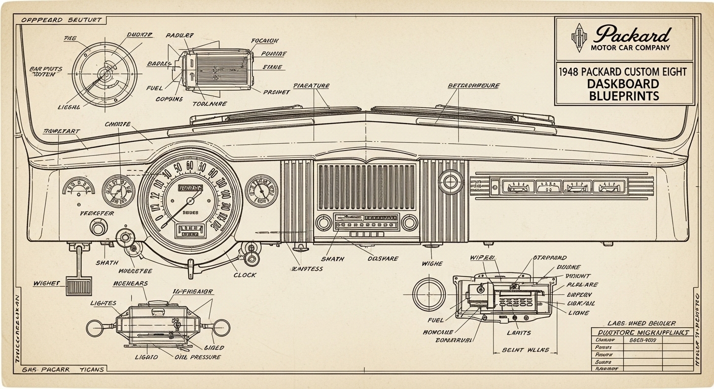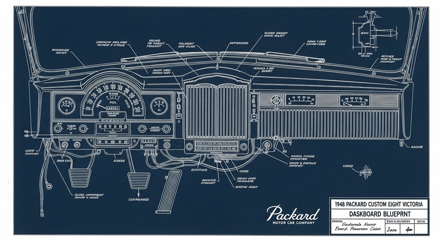 A.I. cars & engines 1948 Packard Custom Eight Victoria dashboard engineering blueprints