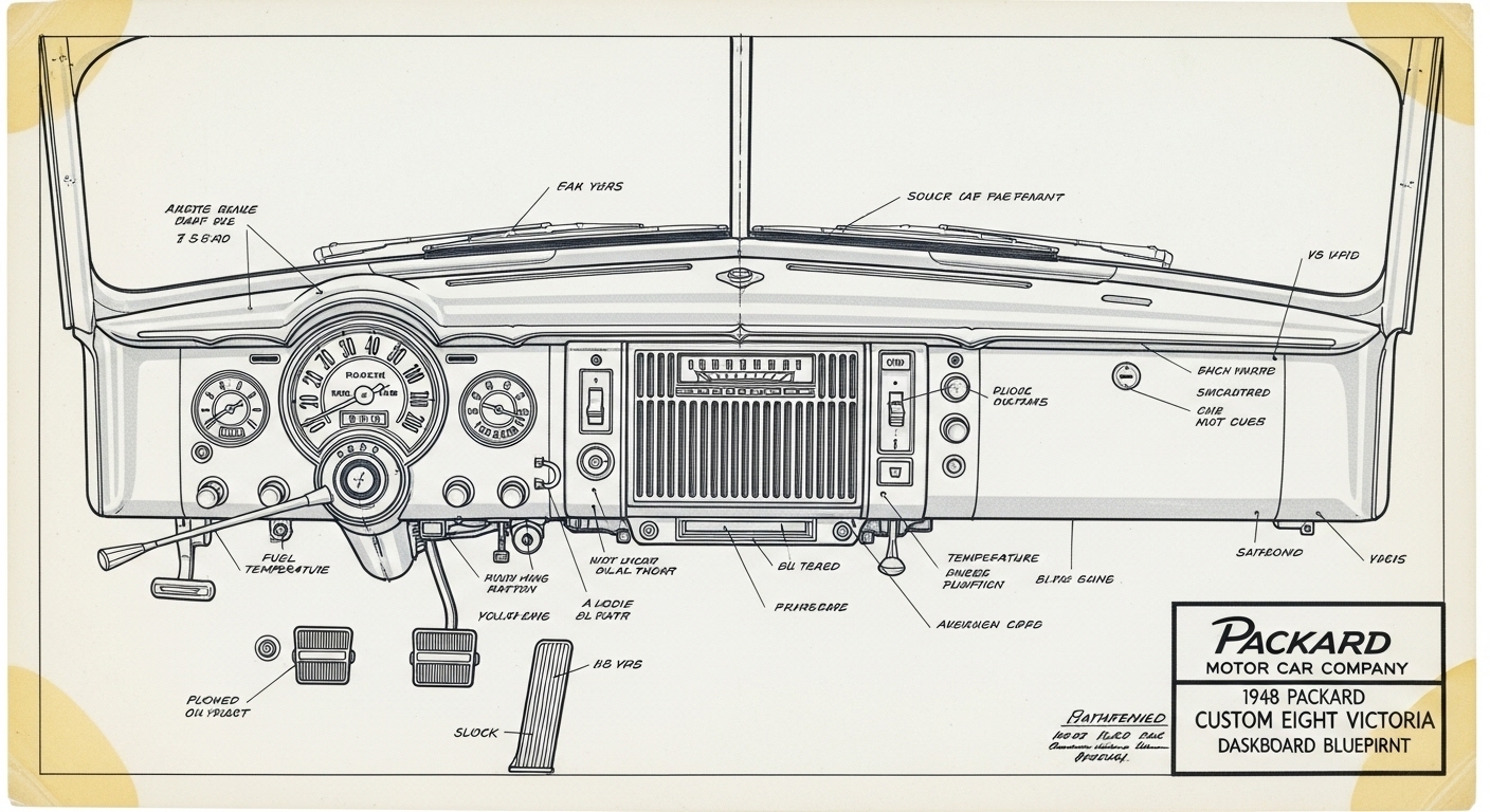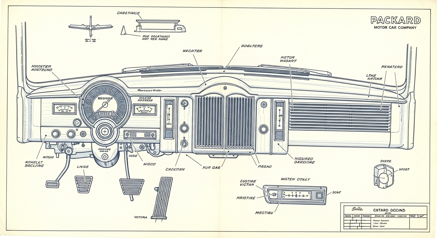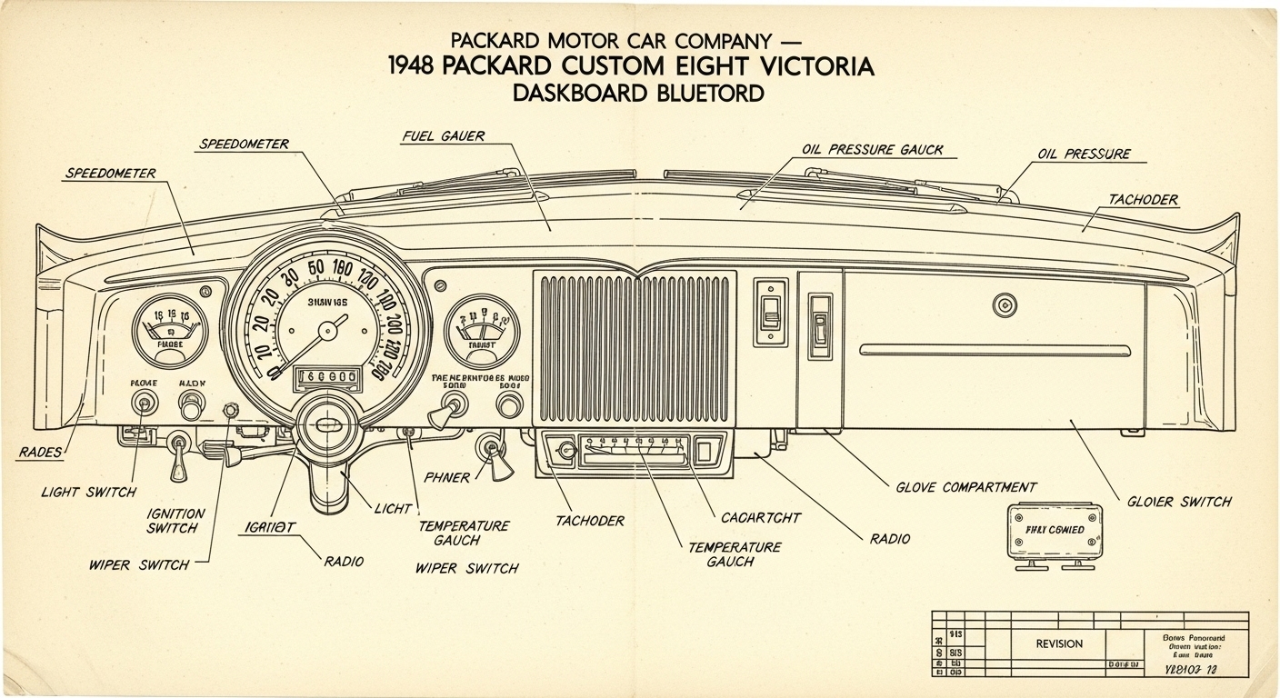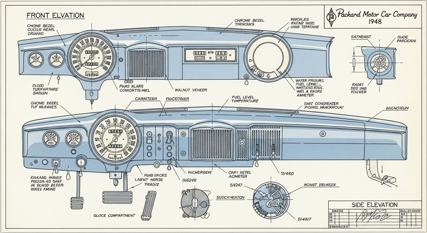 A.I. cars & engines 1948 Packard Custom Eight Victoria dashboard engineering blueprints