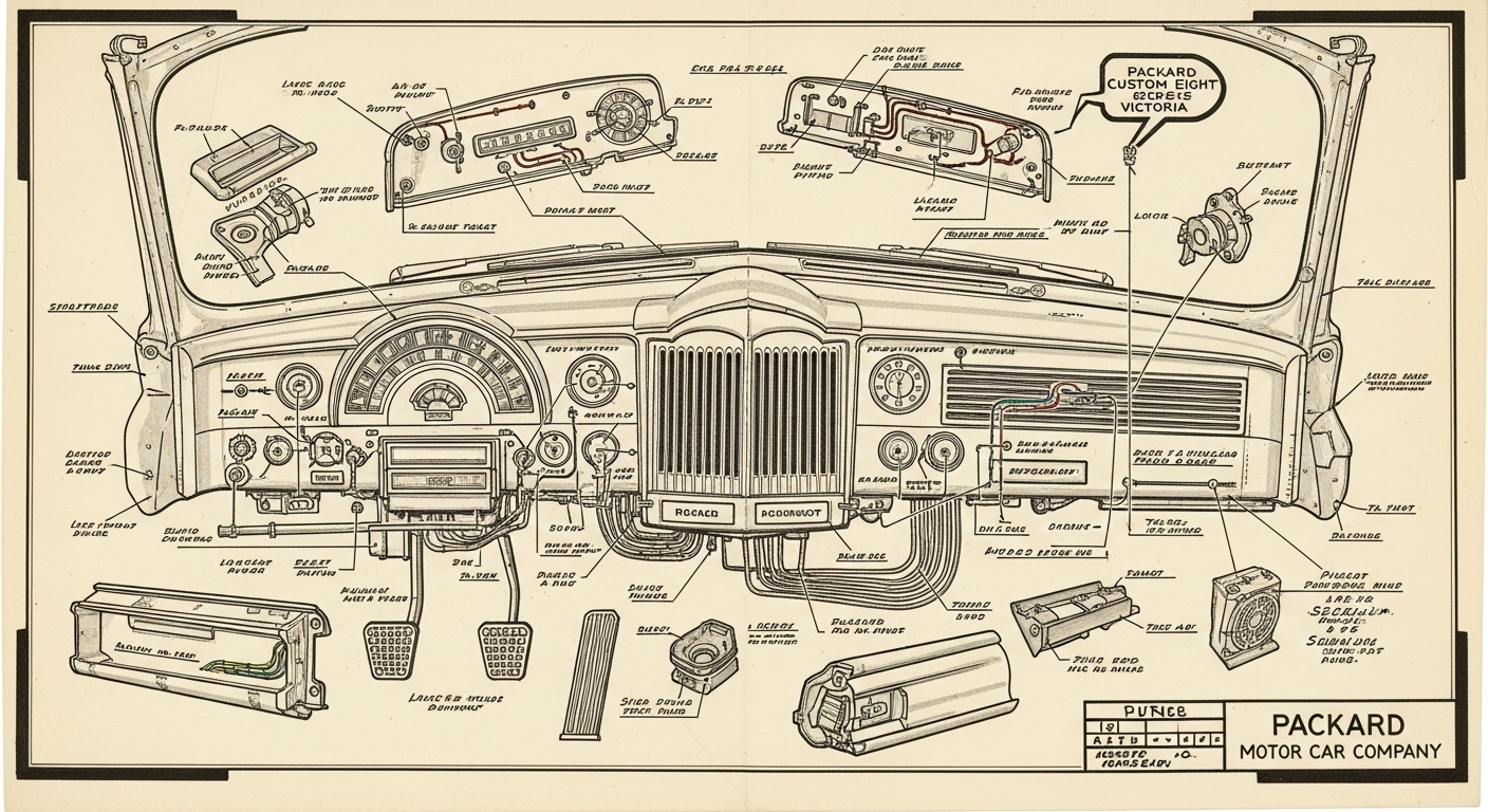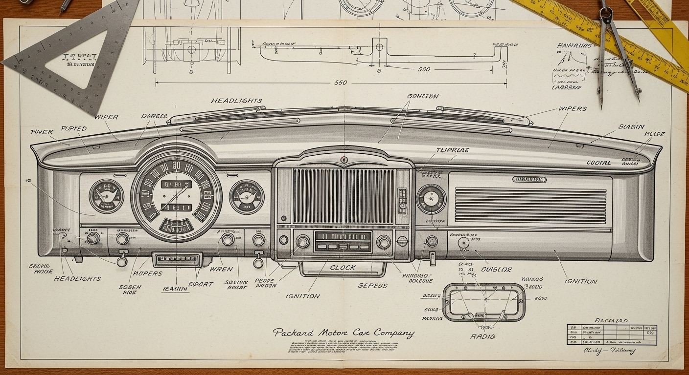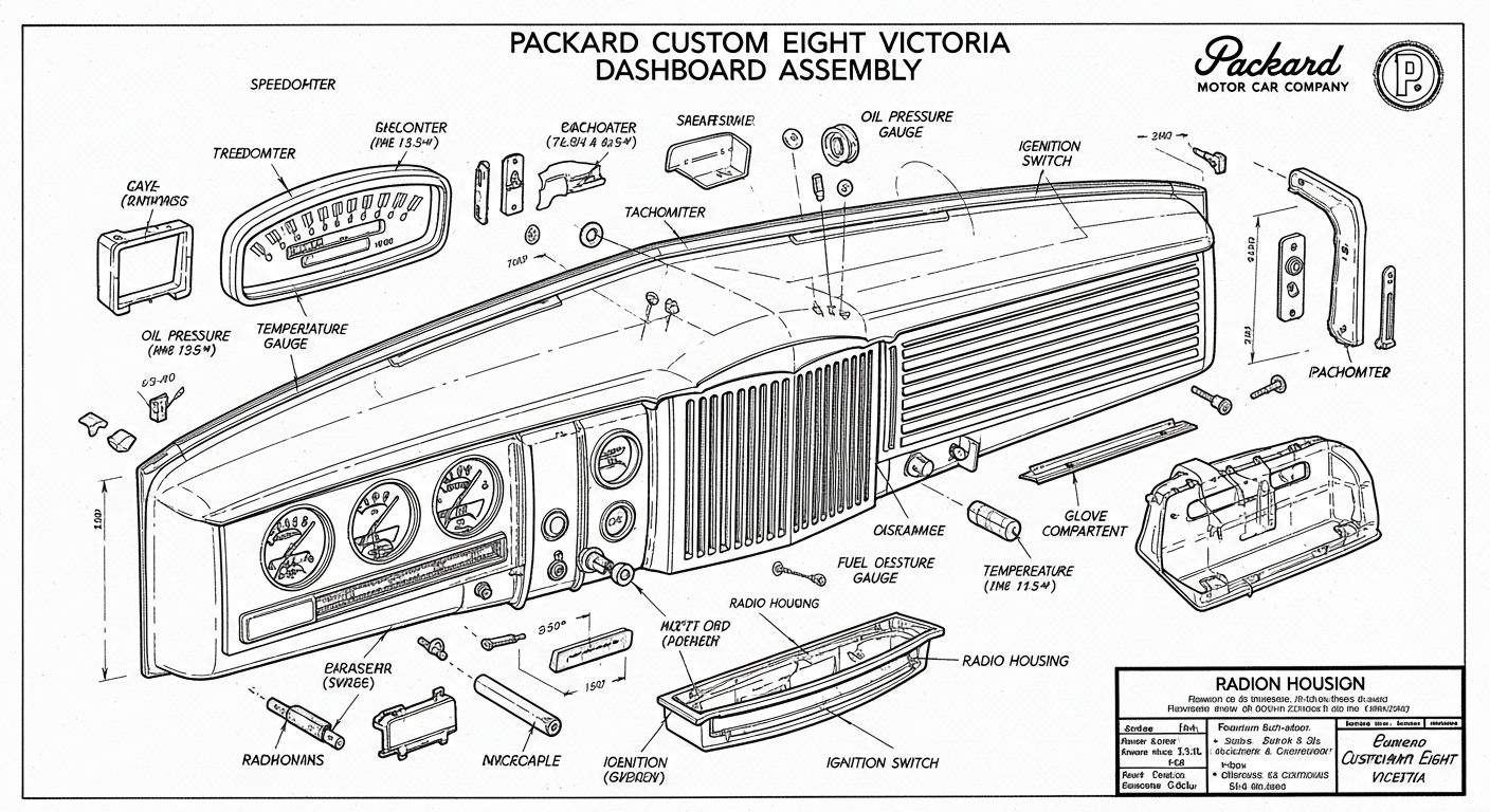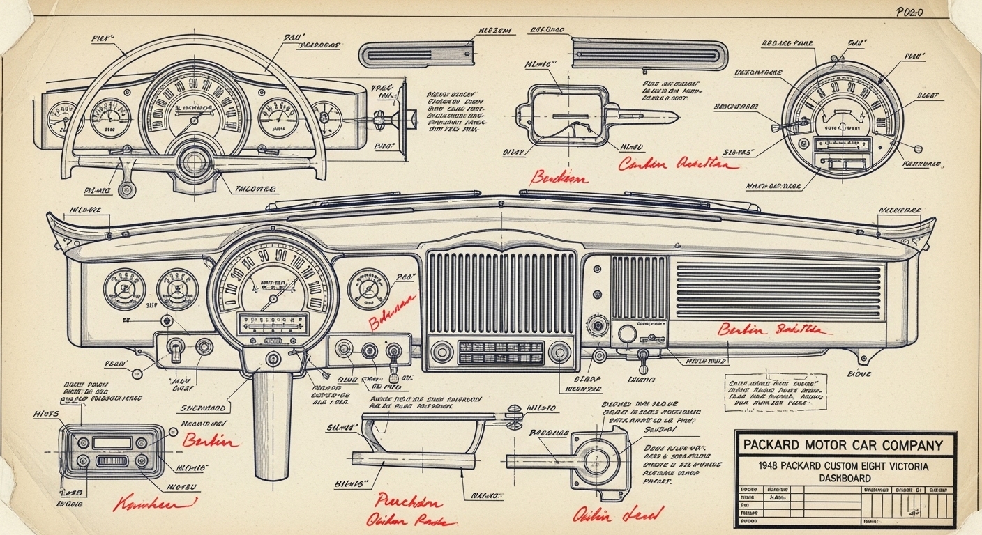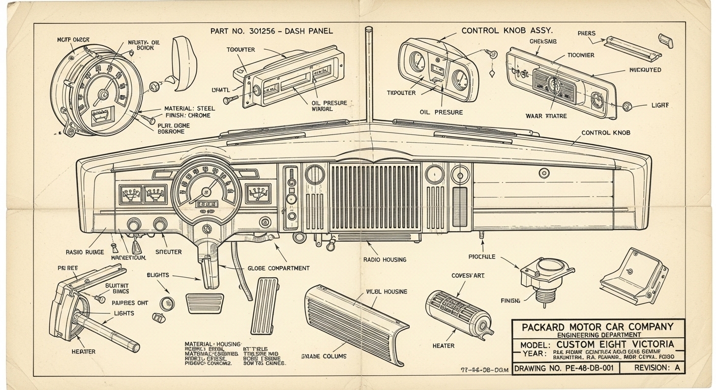 A.I. cars & engines 1948 Packard Custom Eight Victoria dashboard engineering blueprints