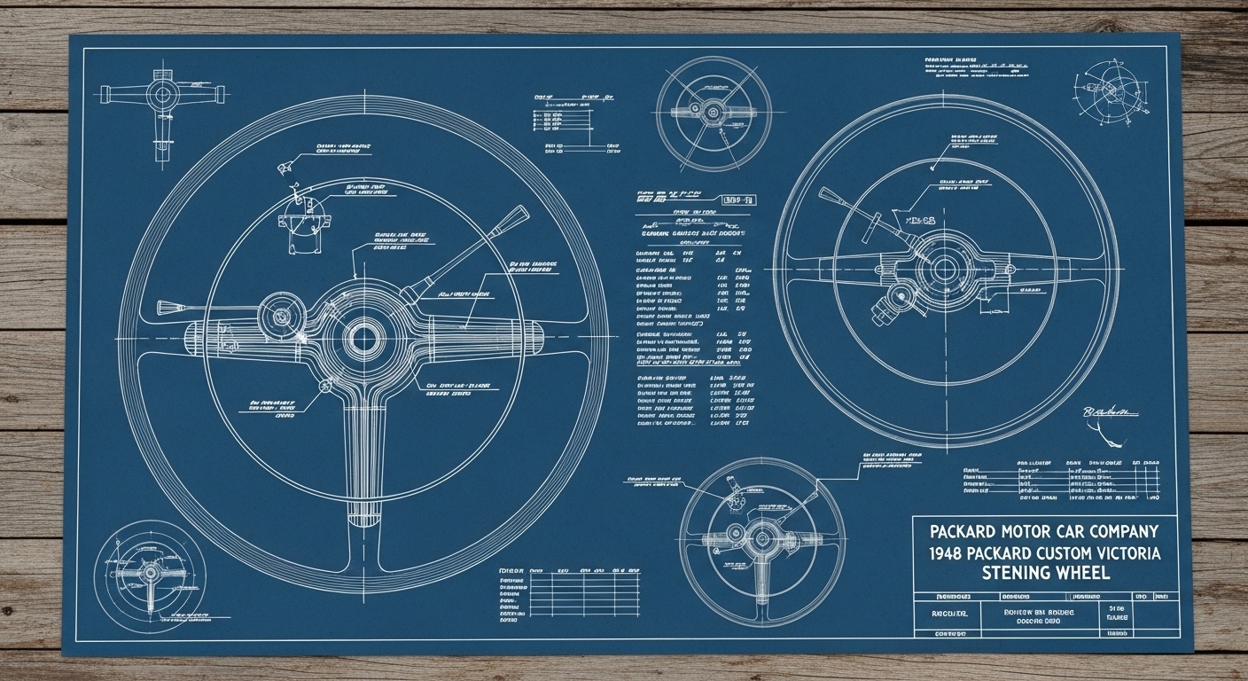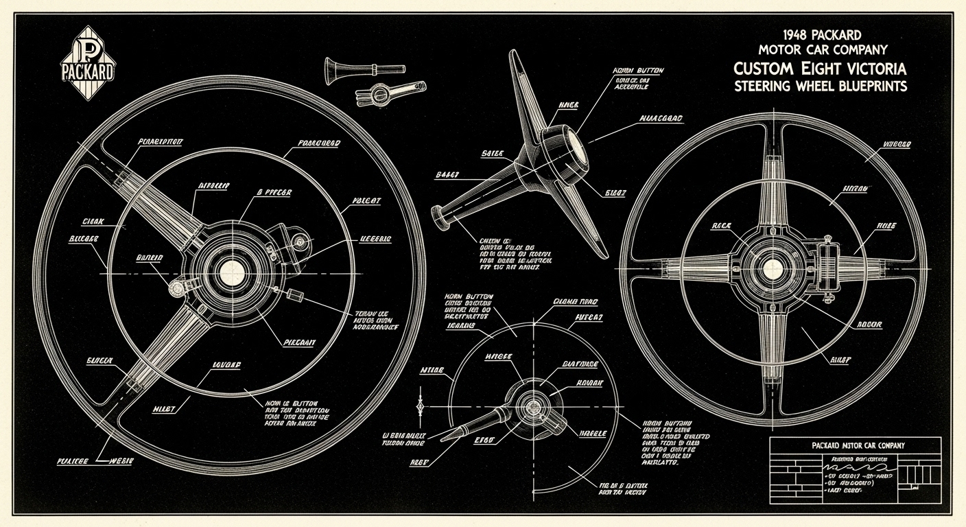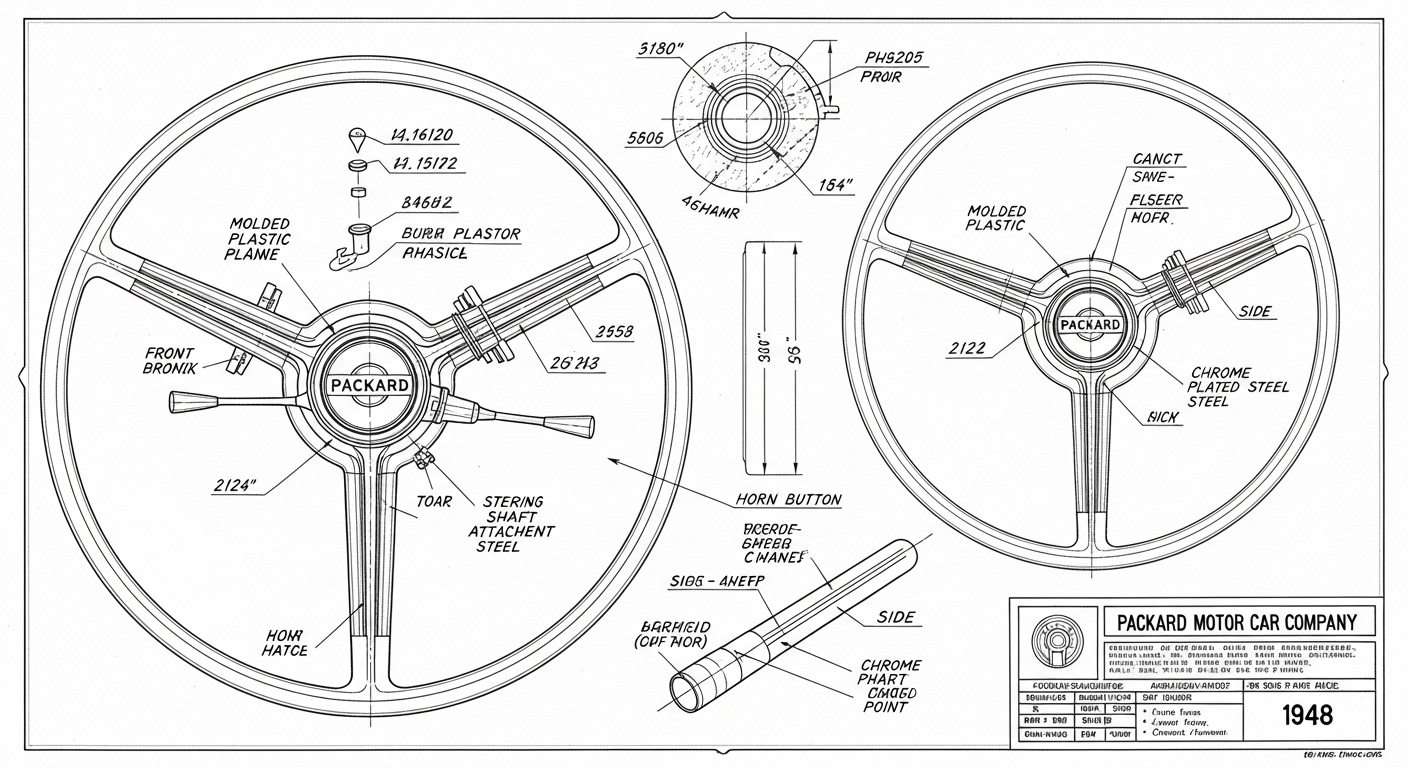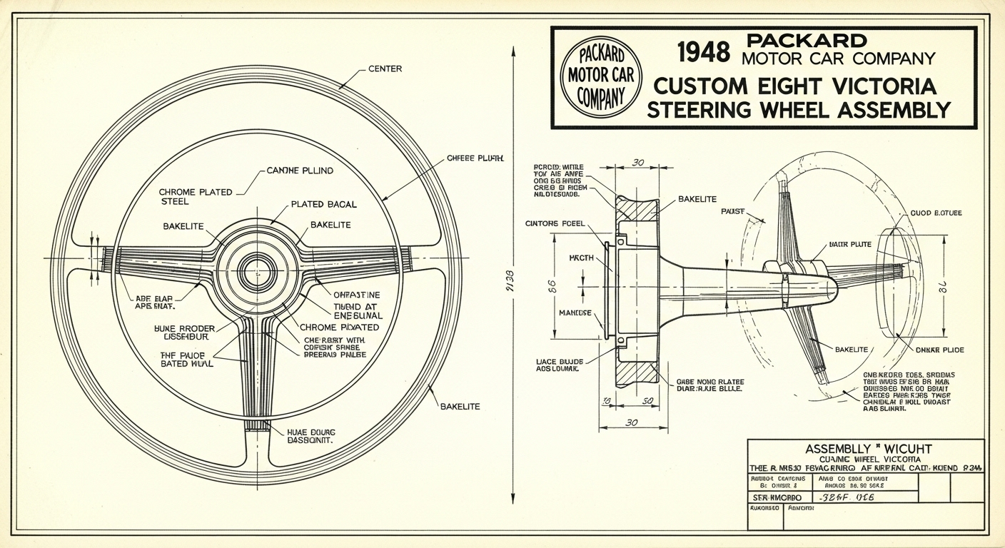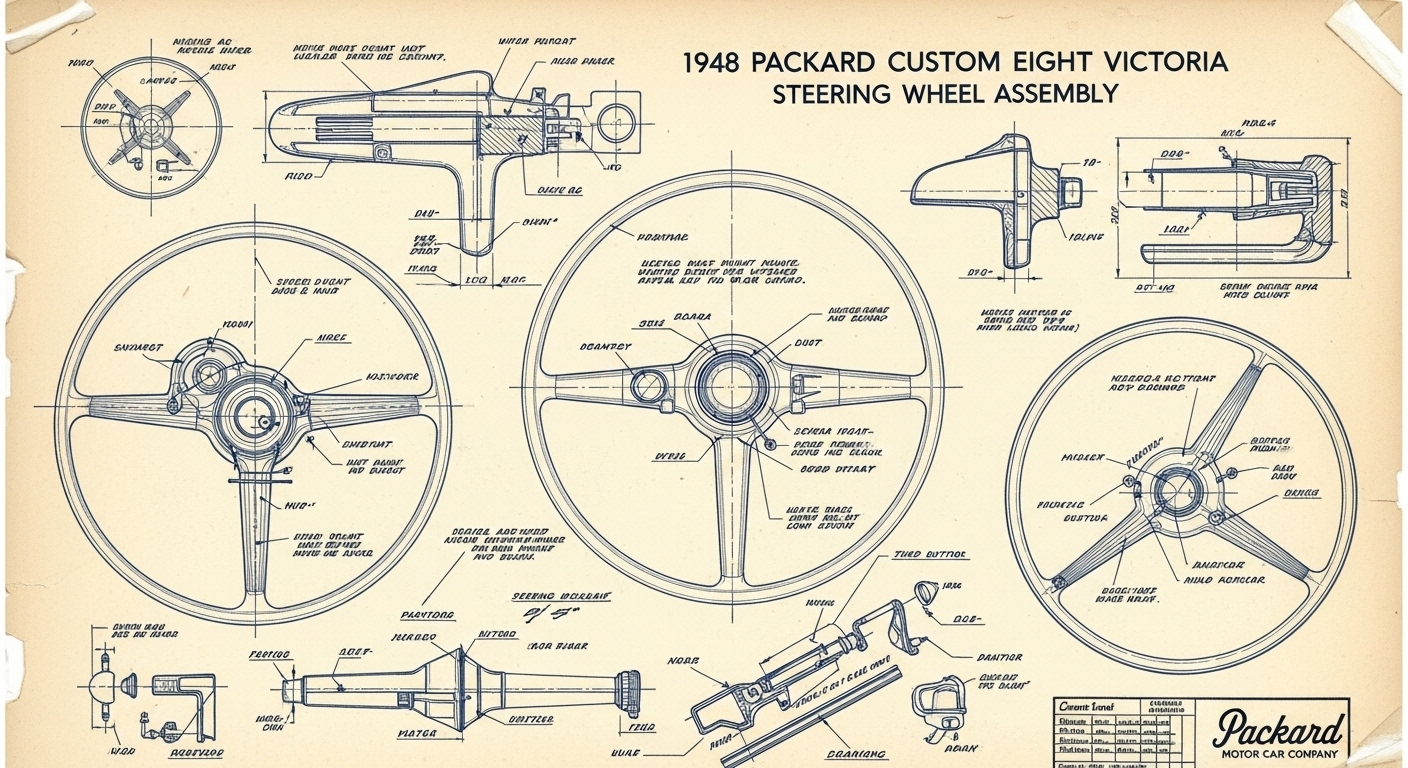 A.I. cars & engines 1948 Packard Custom Eight Victoria steering wheel engineering blueprints