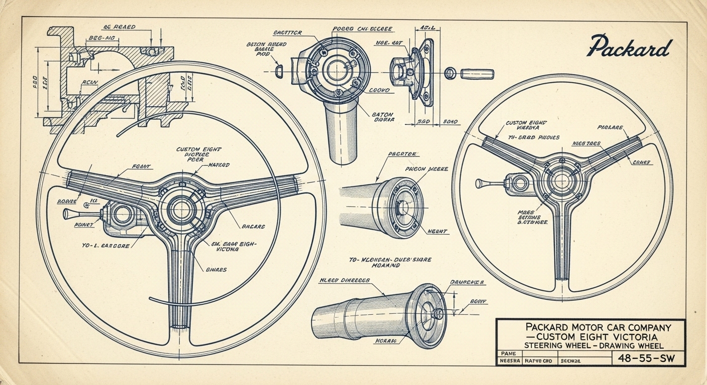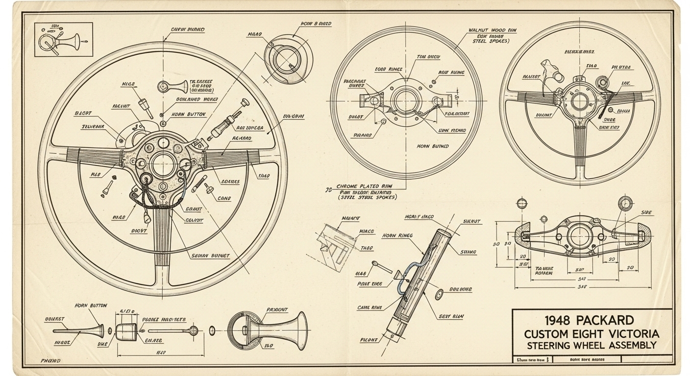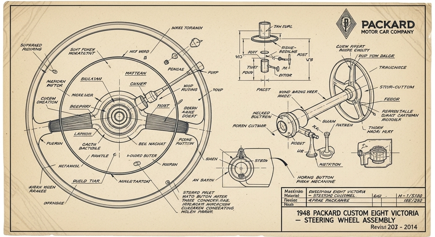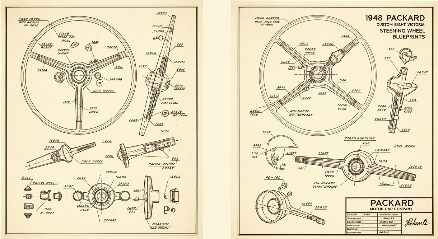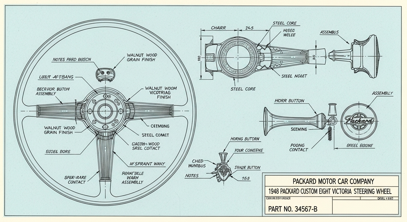 A.I. cars & engines 1948 Packard Custom Eight Victoria steering wheel engineering blueprints