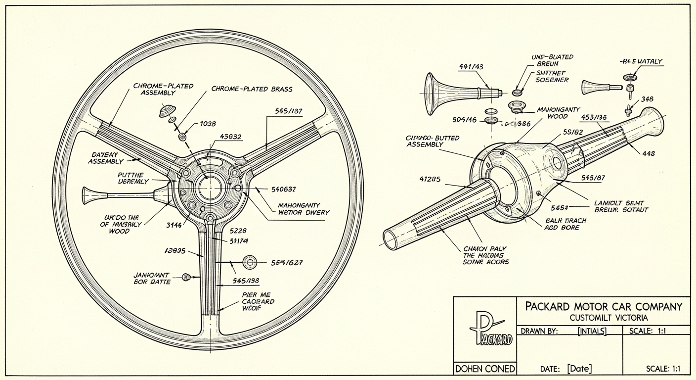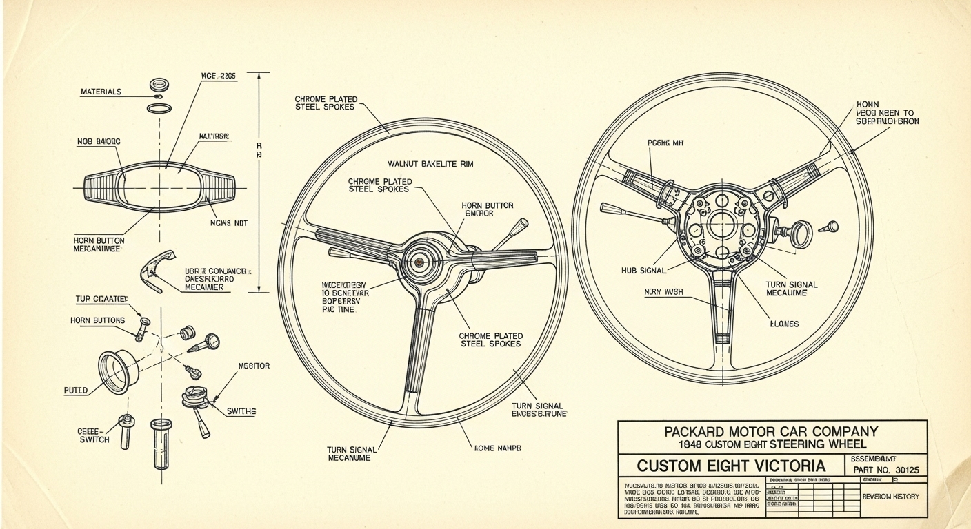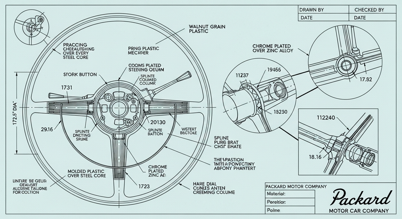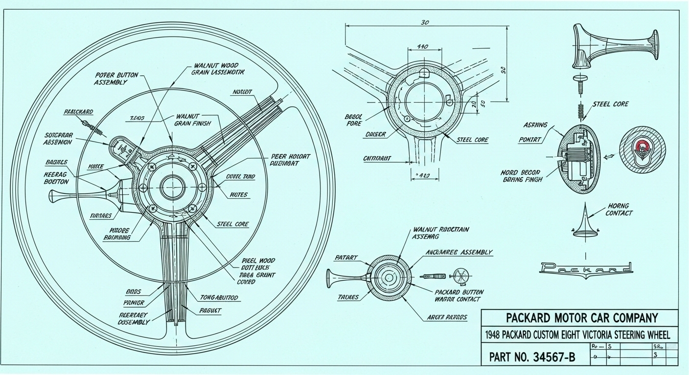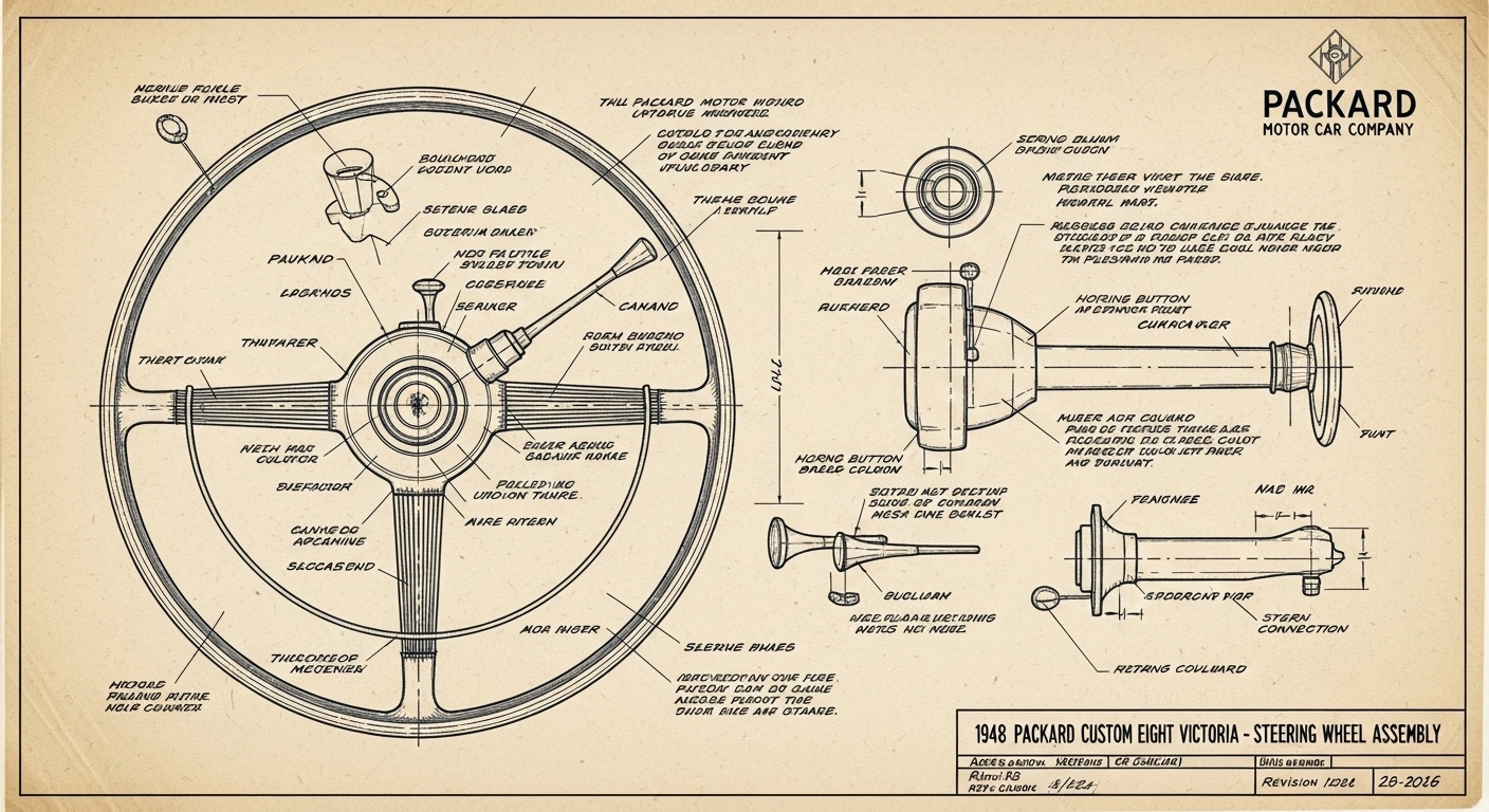 A.I. cars & engines 1948 Packard Custom Eight Victoria steering wheel engineering blueprints