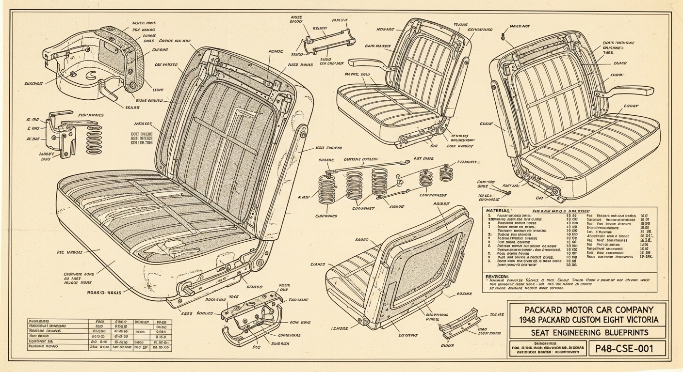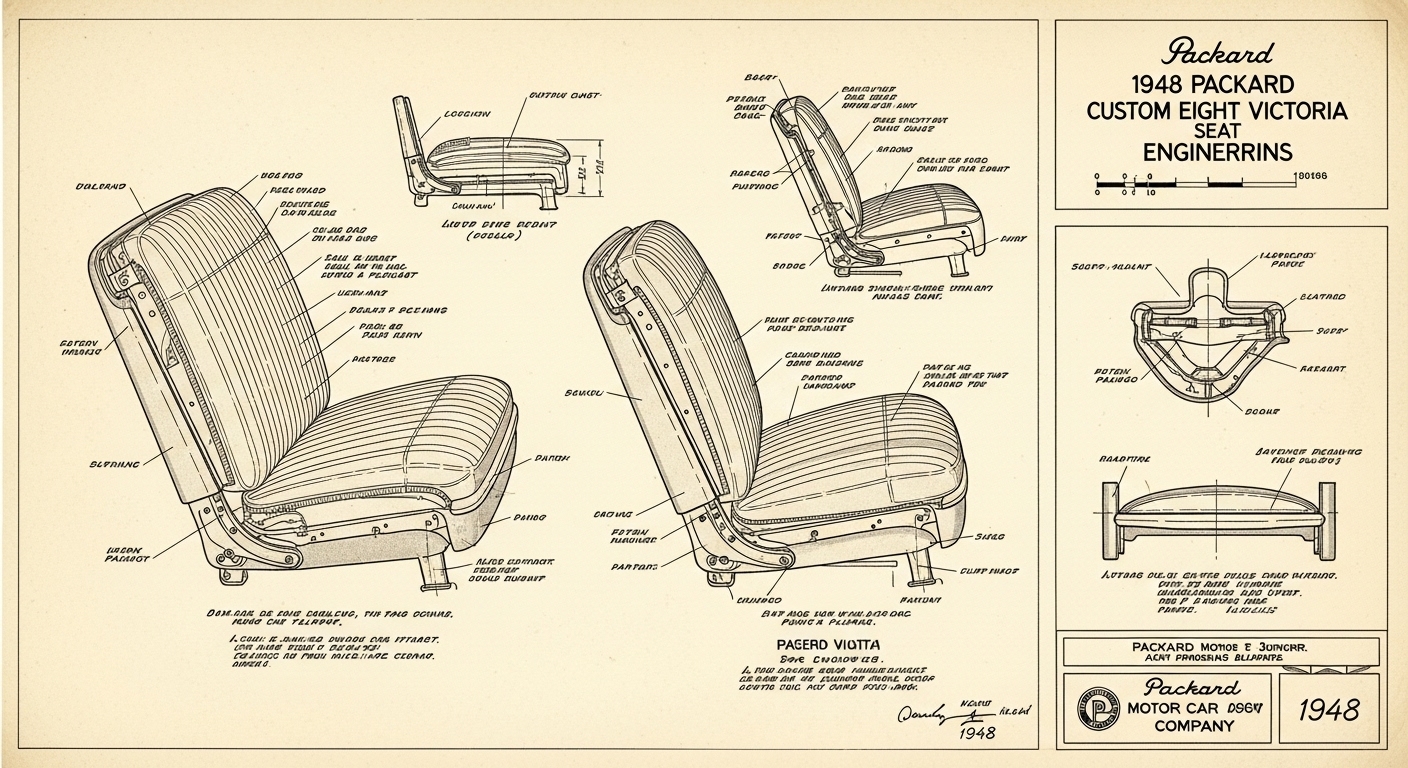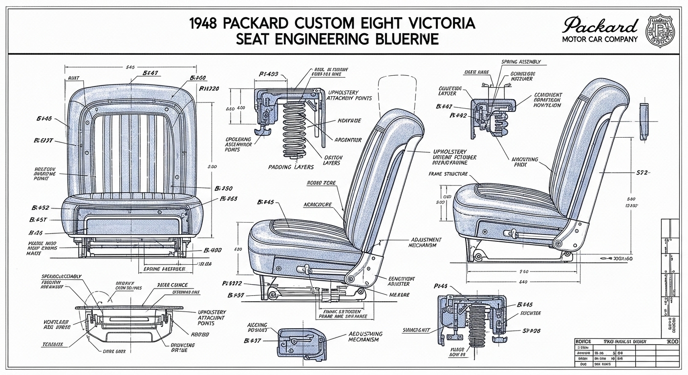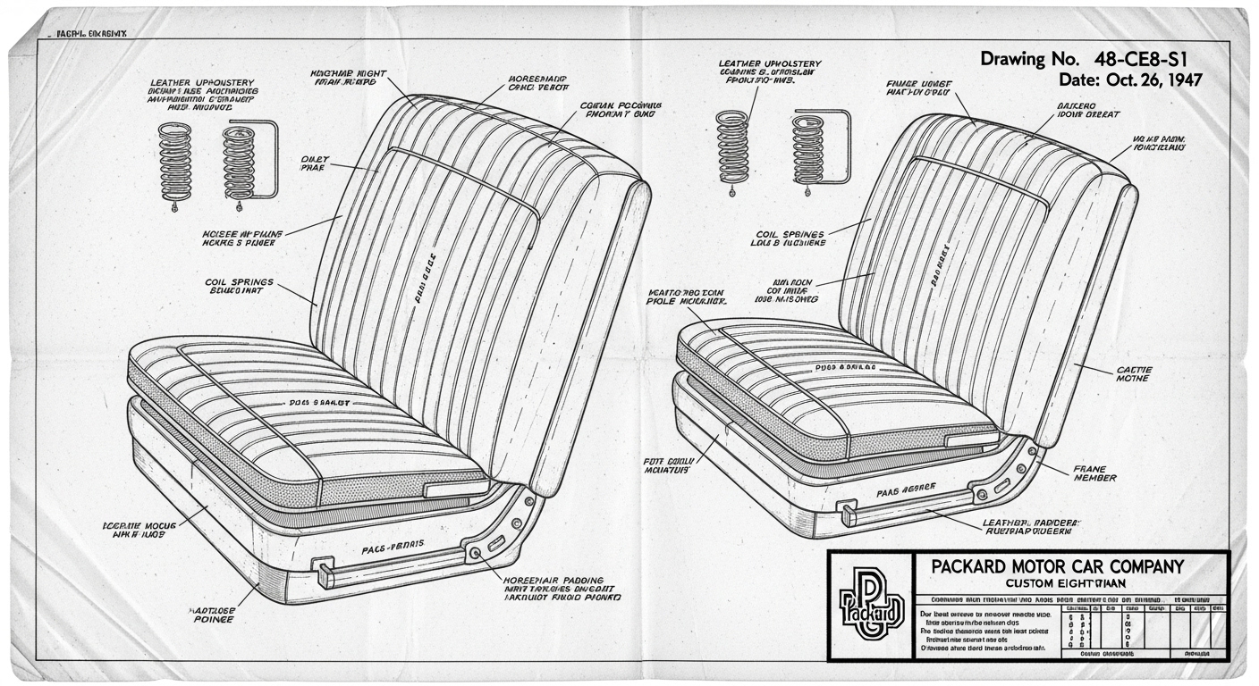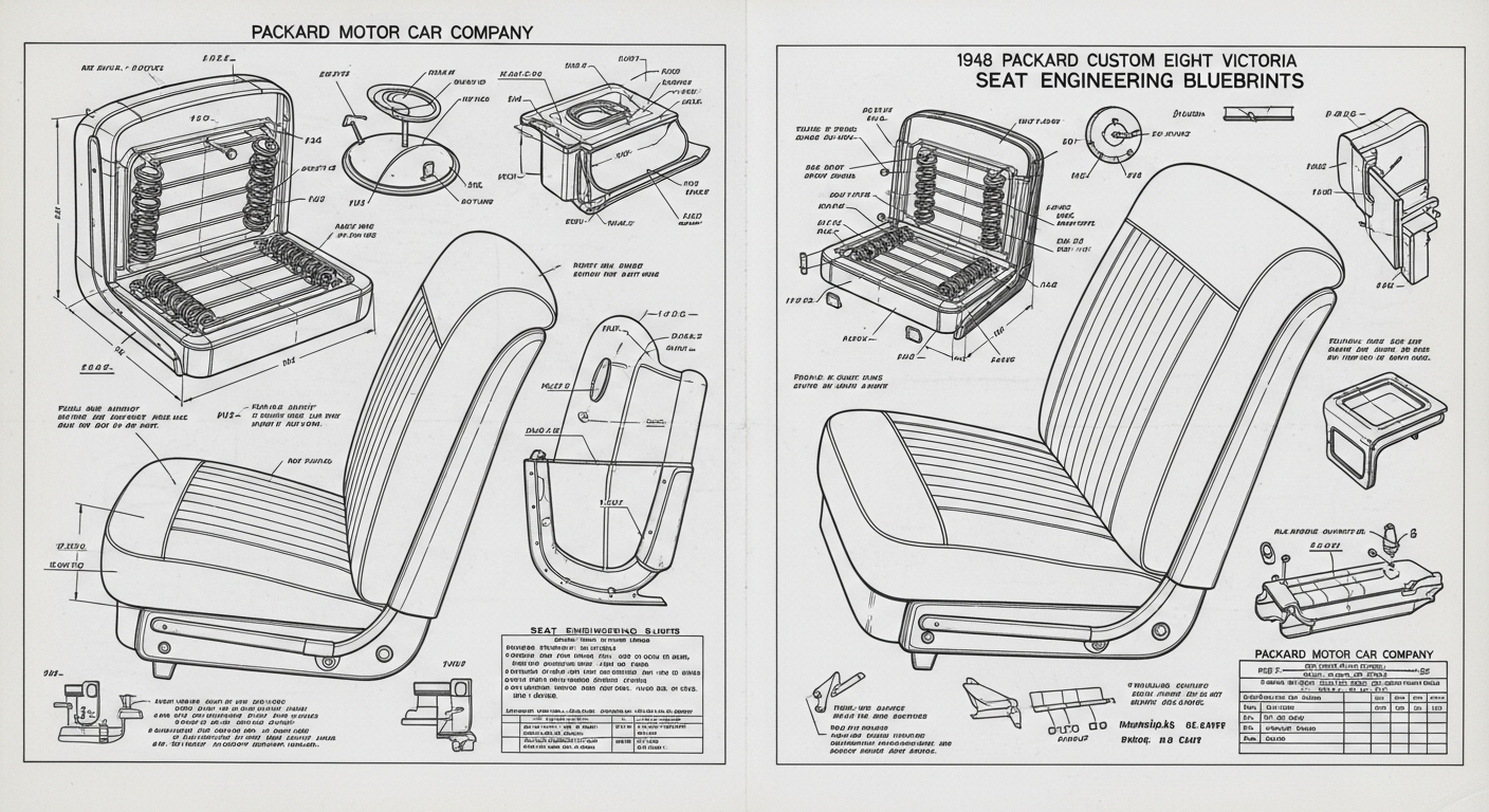 A.I. cars & engines 1948 Packard Custom Eight Victoria seat engineering blueprints
