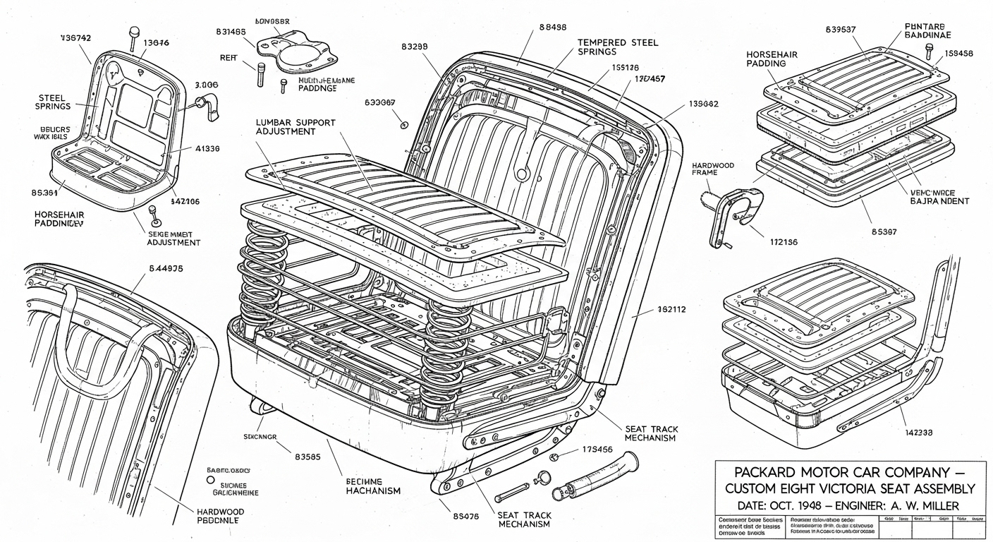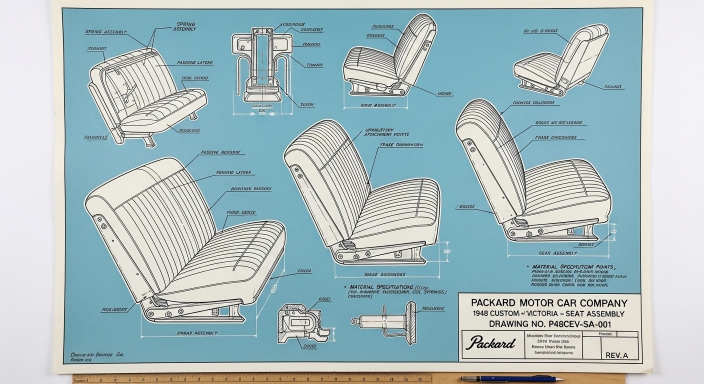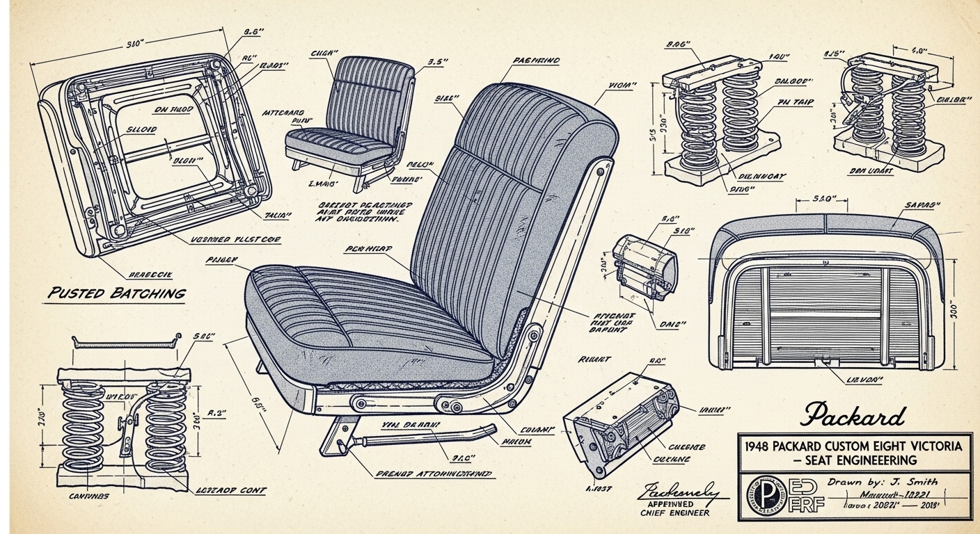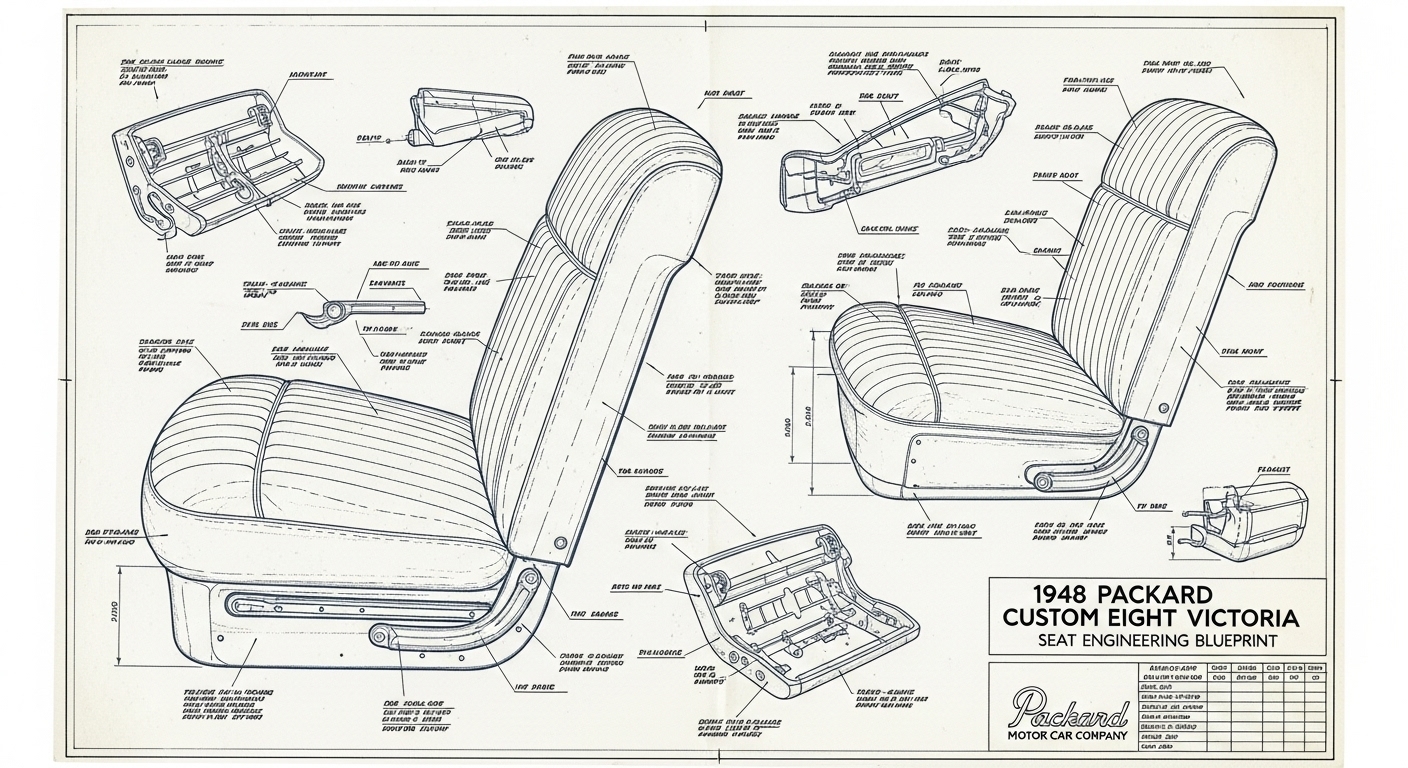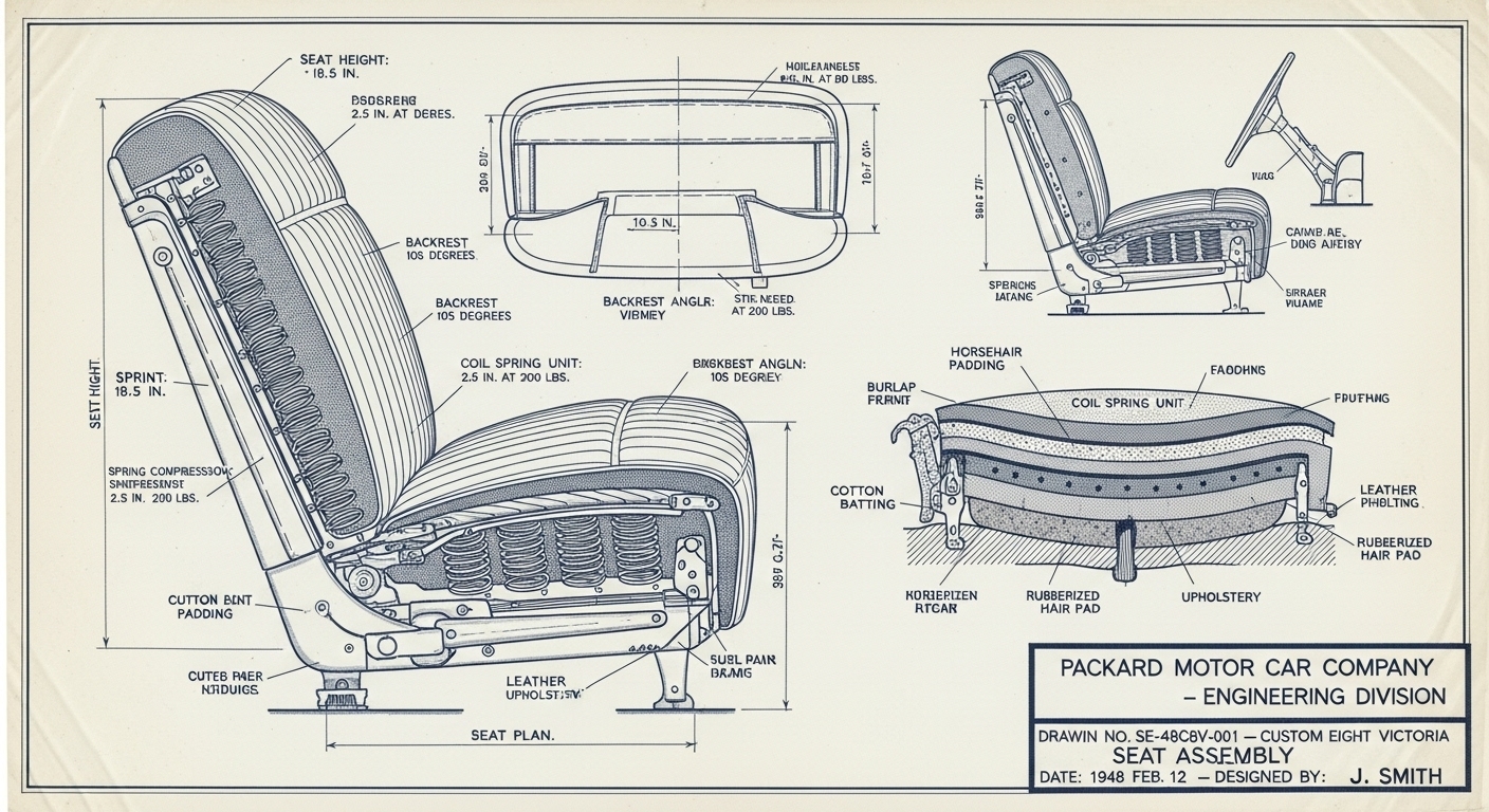 A.I. cars & engines 1948 Packard Custom Eight Victoria seat engineering blueprints