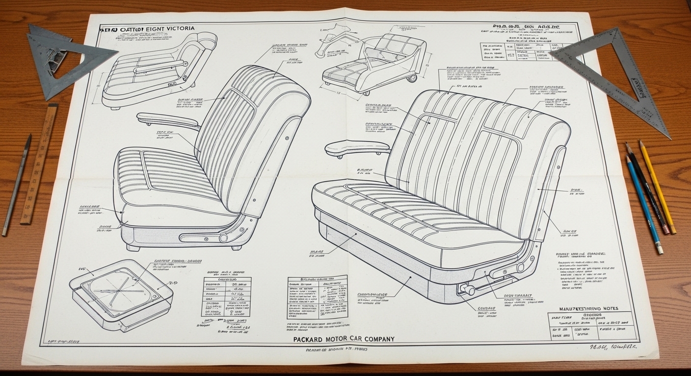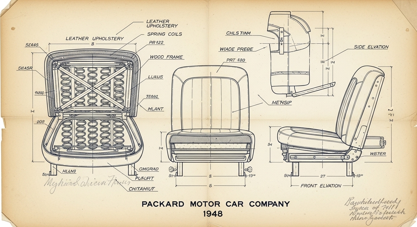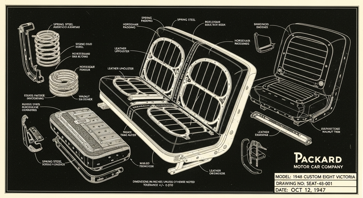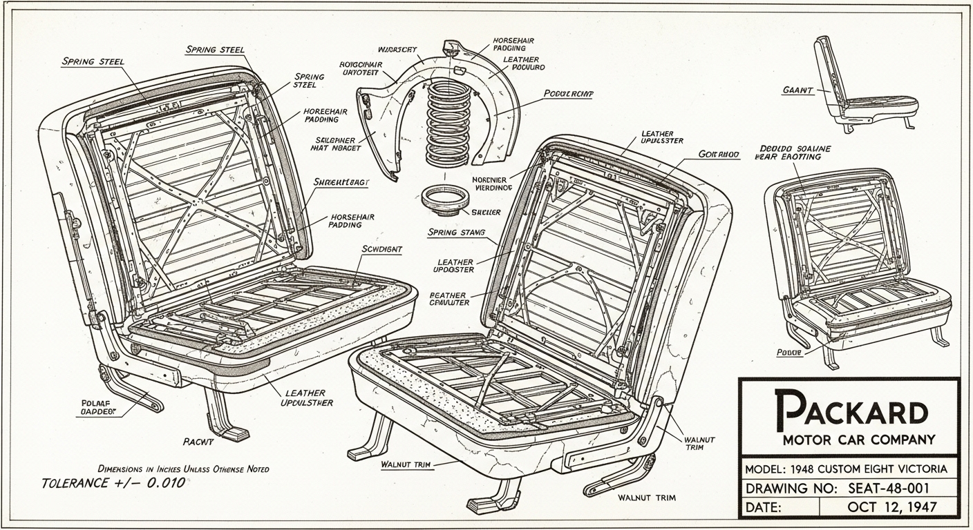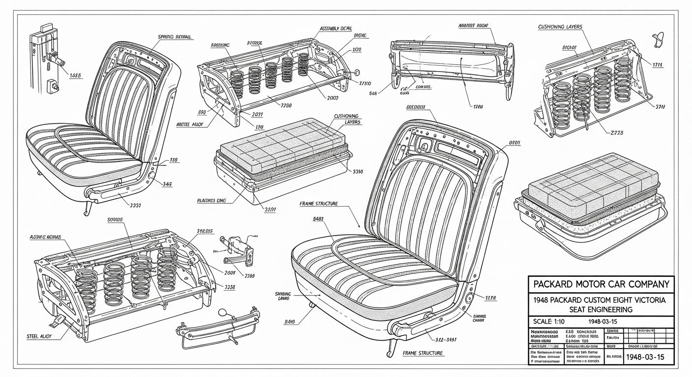 A.I. cars & engines 1948 Packard Custom Eight Victoria seat engineering blueprints