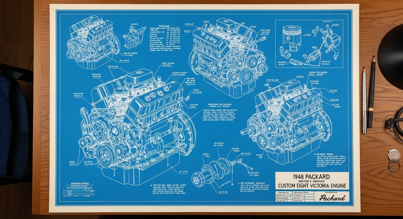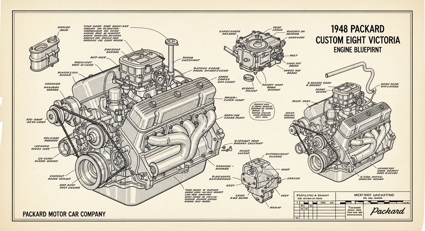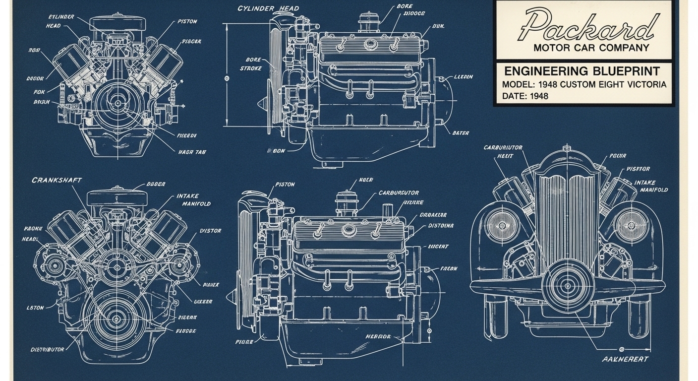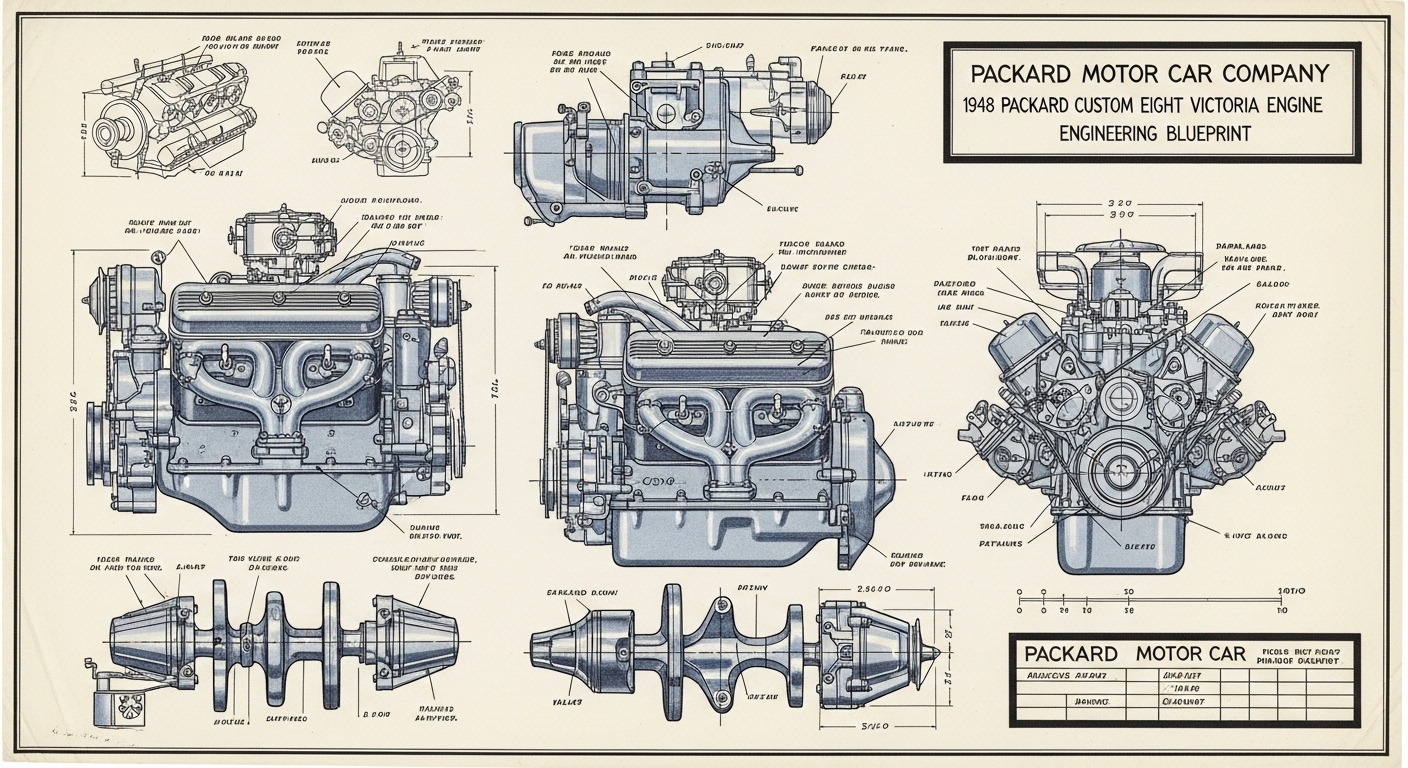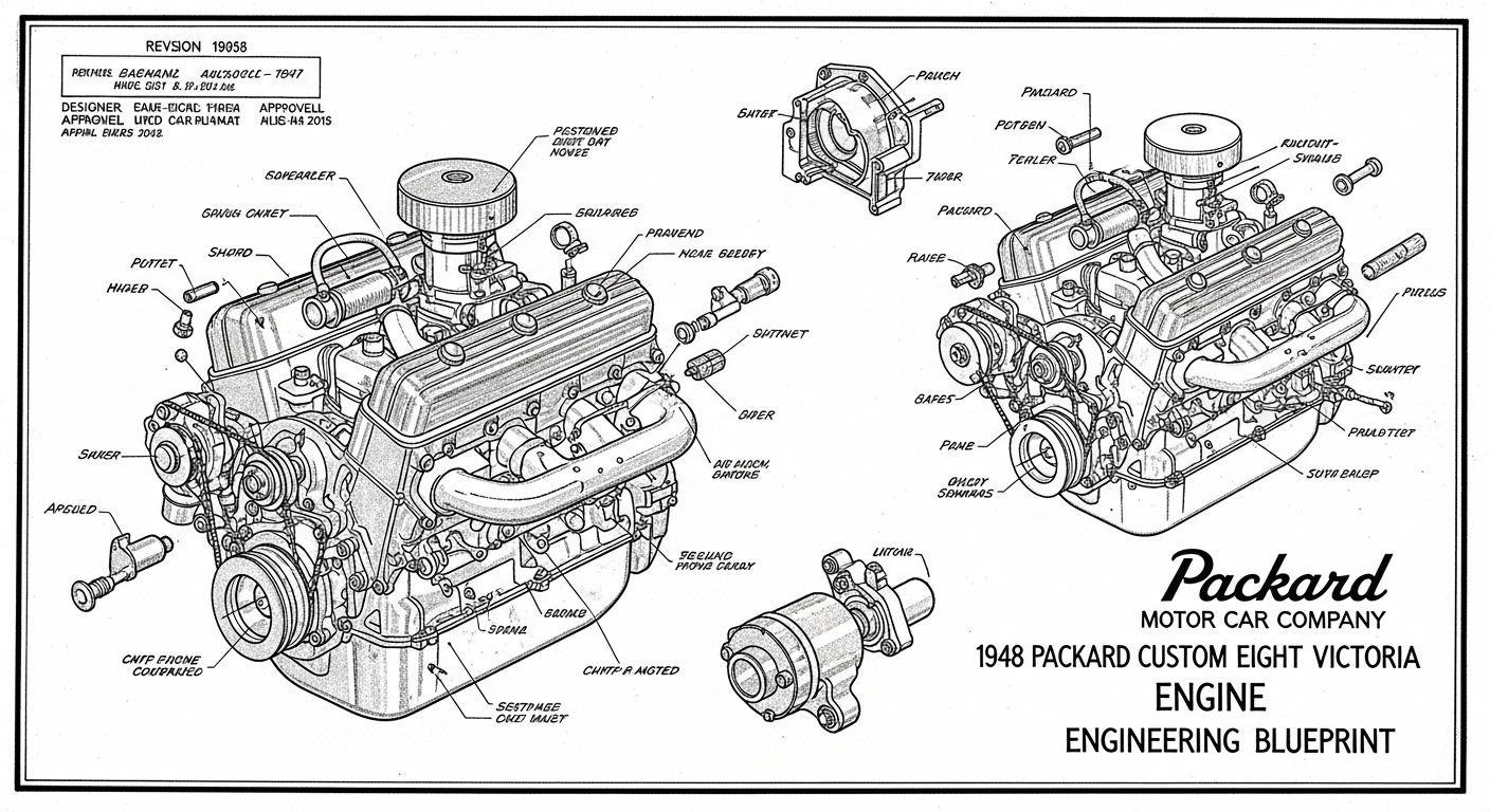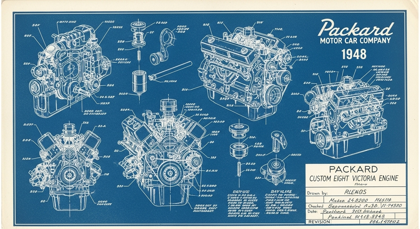 A.I. cars & engines 1948 Packard Custom Eight Victoria engine engineering blueprints
