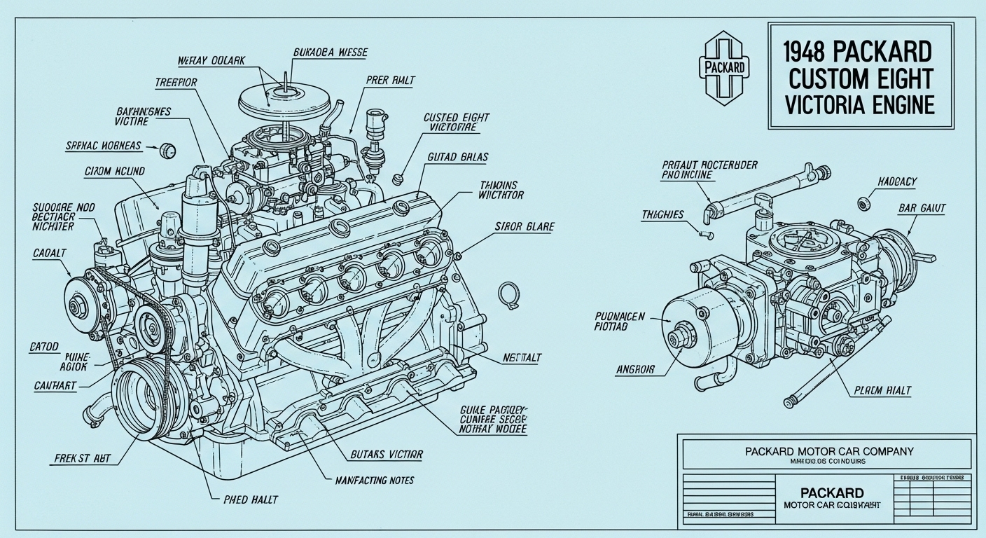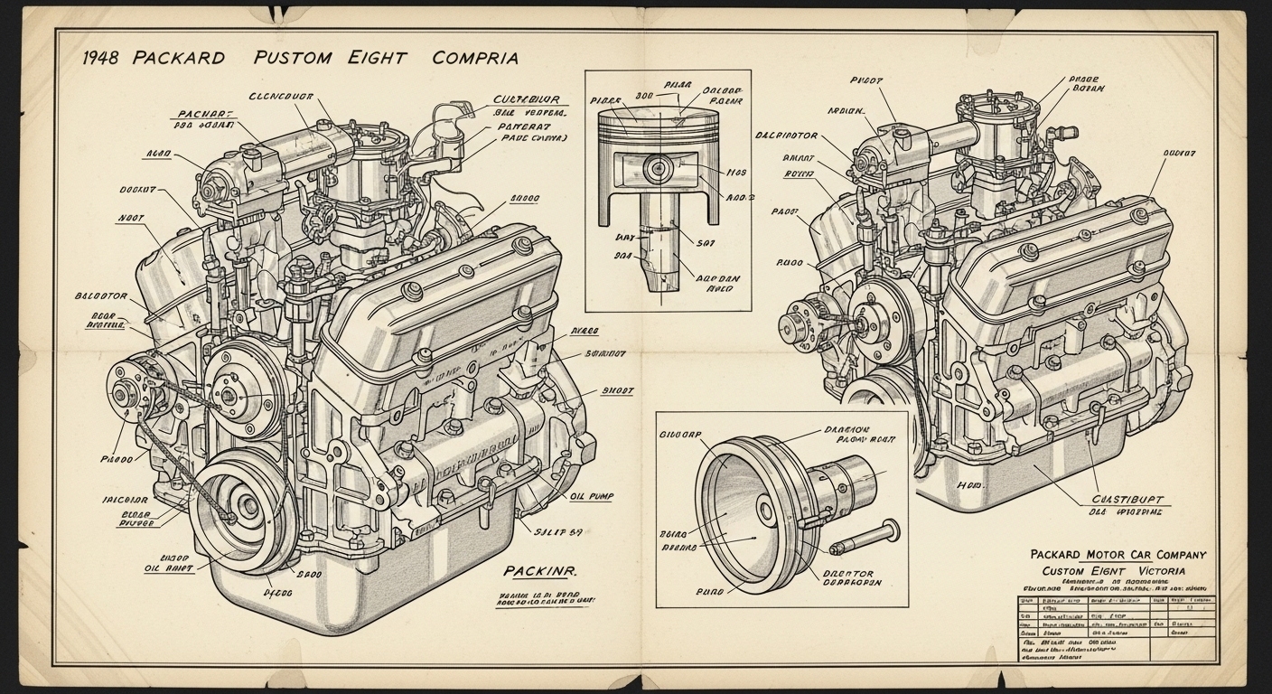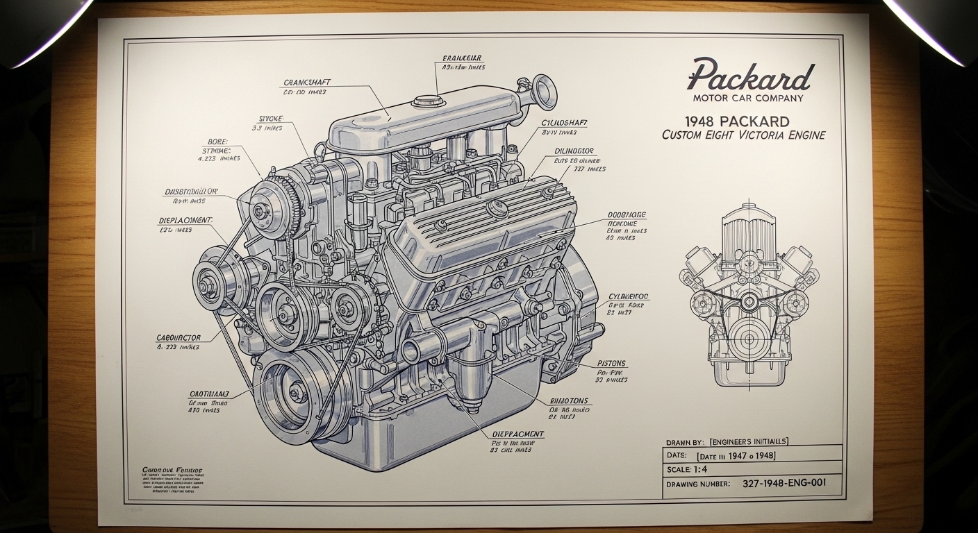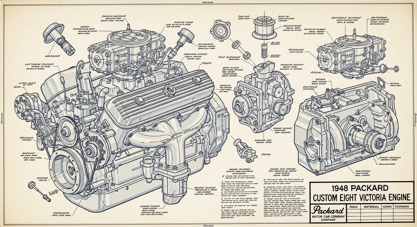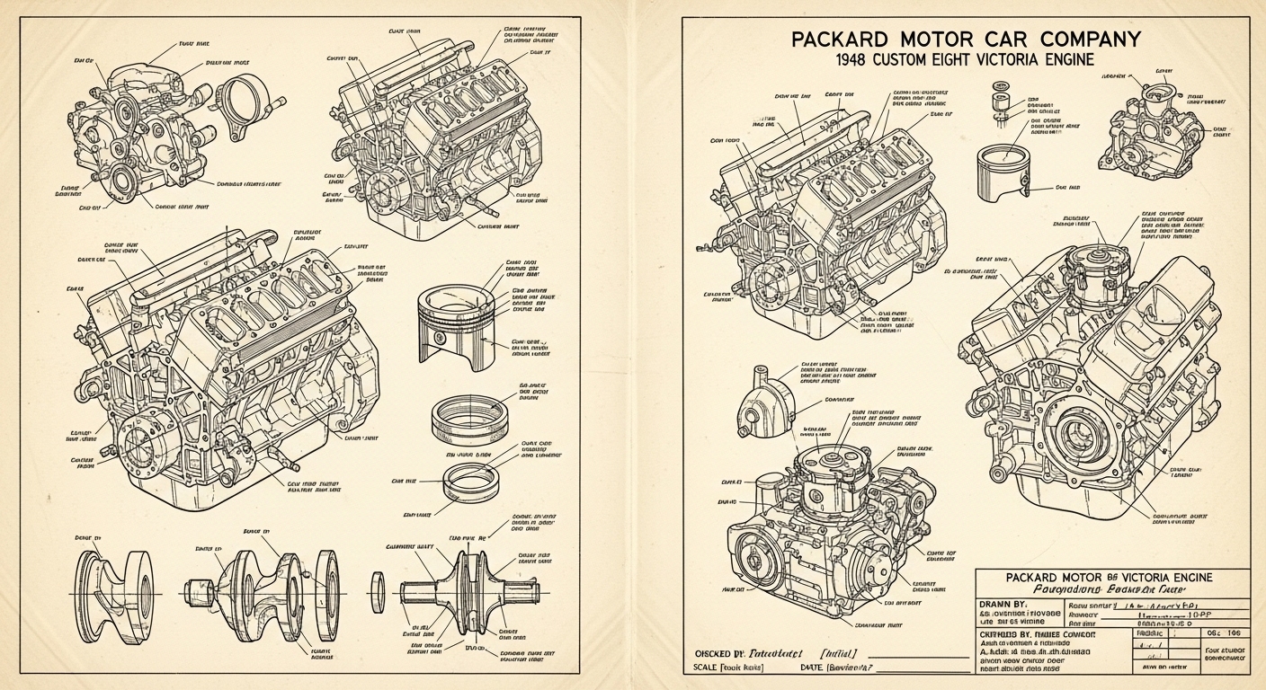 A.I. cars & engines 1948 Packard Custom Eight Victoria engine engineering blueprints