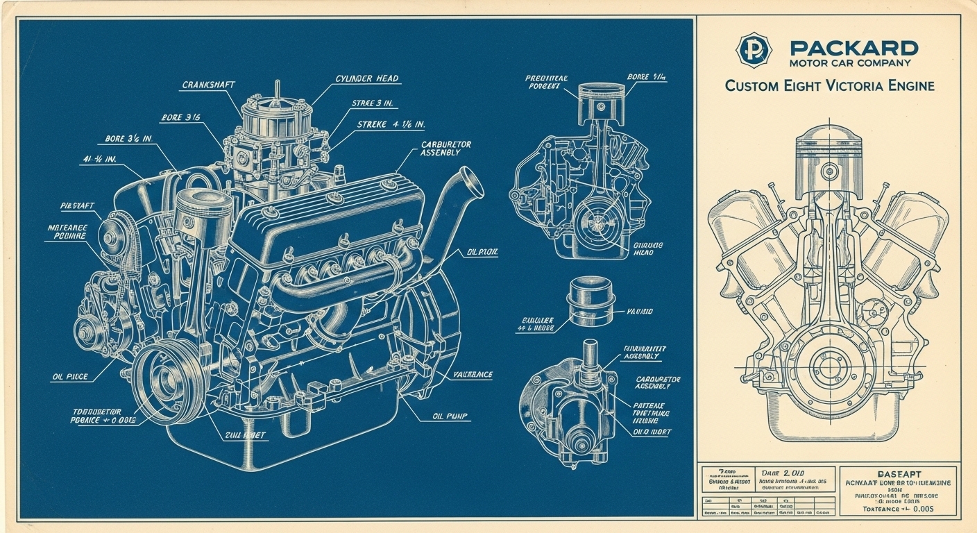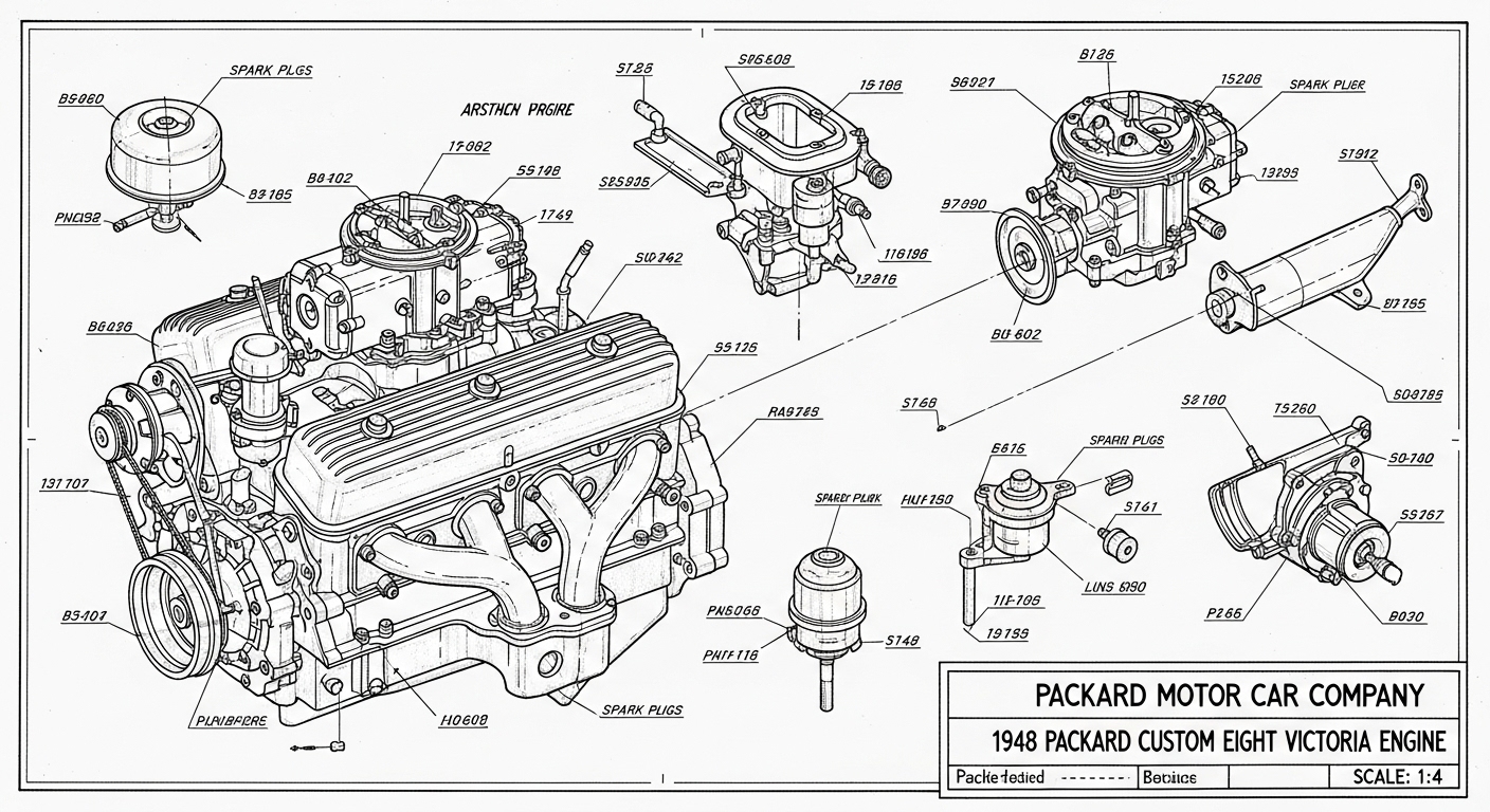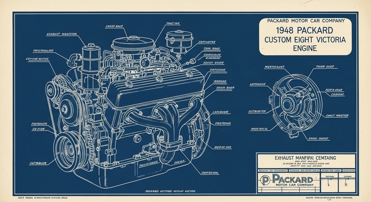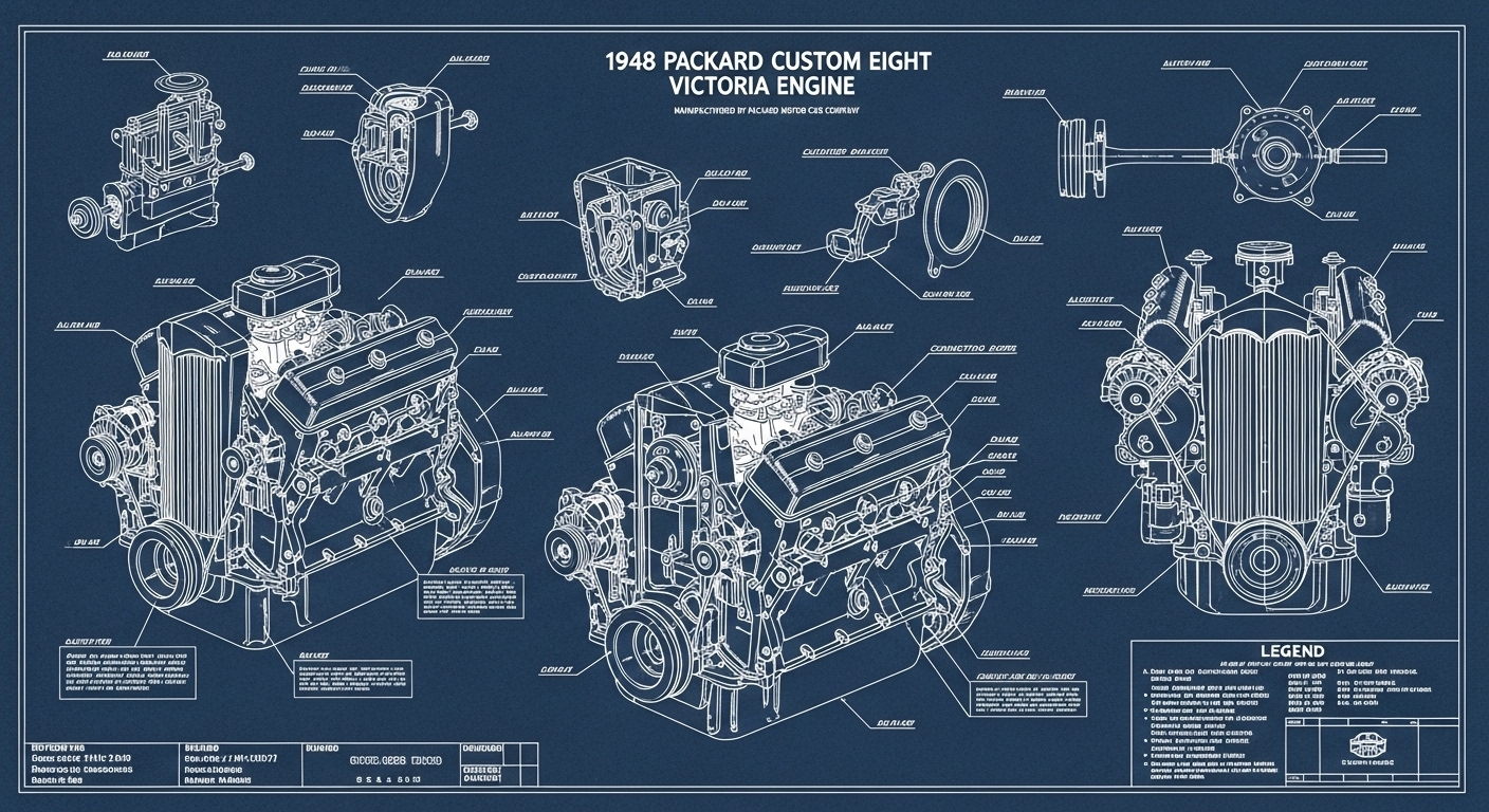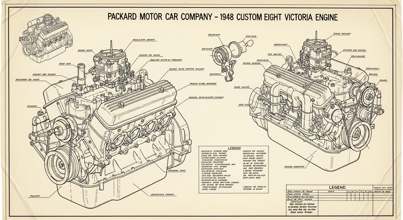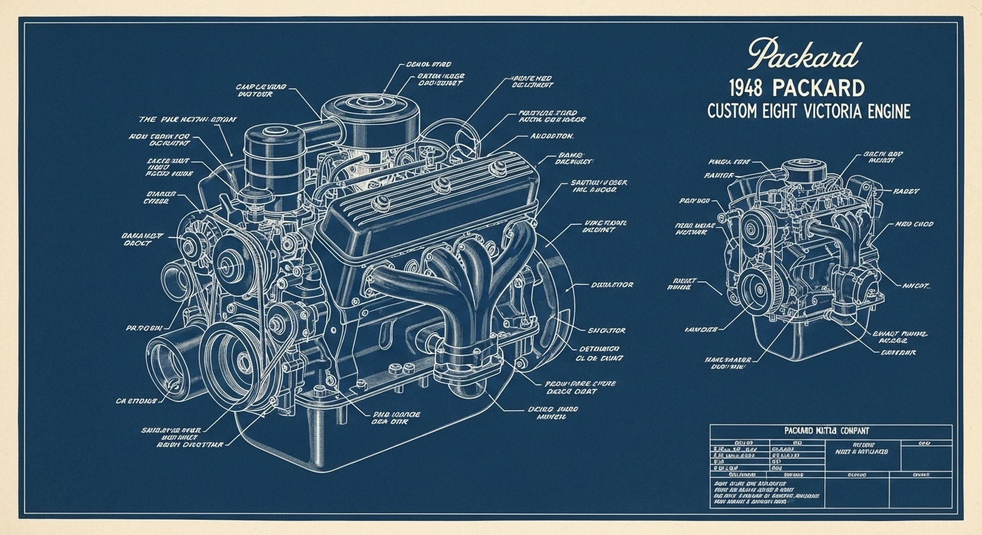A.I. cars & engines 1948 Packard Custom Eight Victoria engine engineering blueprints