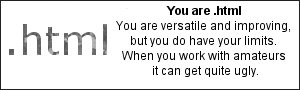 "You are .swf You are flashy, but lack substance. You like playing, but often you are annoying. Grow up."