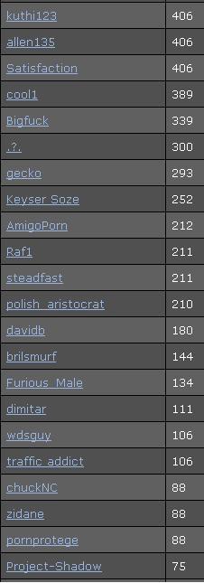 ![]() Please make sure to post your Pussycash.com username in this thread so that We'll be able to give away the prizes. The Winners are: posters 1 - 24 ![]() posters 1 - 37 ![]() ![]() #1 posts ? Silent Thunder #4 posts ? beta-tester #7 posts ? FunForOne #10 posts ? Entropy #15 posts ? Trent Edison #25 posts ? Raf1 #35 posts ? zidane =^..^= $200 adonthenet $150 allen135 $100 AmigoPorn $200 BastarD $150 beta-tester $350 boner 2.0 $250 born4porn $300 chuckNC $50 cool1 $350 + Ipod davidb $250 Entropy $500 Firehorse $100 FrankHolland $200 FunForOne $400 Furious_Male $150 gecko $50 iggysick $350 + Ipod Keyser Soze $150 Manowar $50 okdesign $50 polish_aristocrat $250 Project-Shadow $200 Raf1 $150 Satisfaction $50 Silent_Thunder $400 + Ipod steadfast $100 Trent Edison $450 tungsten $250 + Ipod Vitasoy $50 wdsguy $650 + Ipod zidane $50 ![]() Hope you have enjoyed this great competition, see you in our next promotion. The Pussycash.com team!