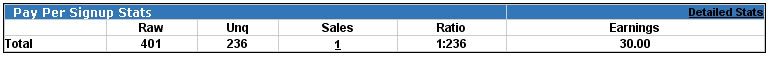 Lets get real folks while one sale in 235 clicks might make us feel warm inside and show promise or a great program. It is WAY too soon to tell. Wait a week or two and you will get alot better idea of the sites overall conversion.