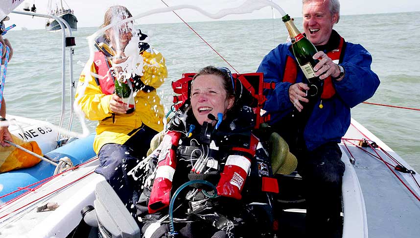 "Hilary Lister, from Kent, used controls powered by her breath to navigate her boat from England to France, reaching Calais after six hours and 13 minutes."