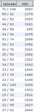 Below are a little (todays) stats of 21 files. Remember i own 6k files on 1 servers and a total of 5 servers. ![]() This is just limewire, i use others too. |