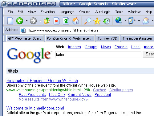 Accordingly, Google is currently offering the Prez's biography as its top link for the search 'failure':
