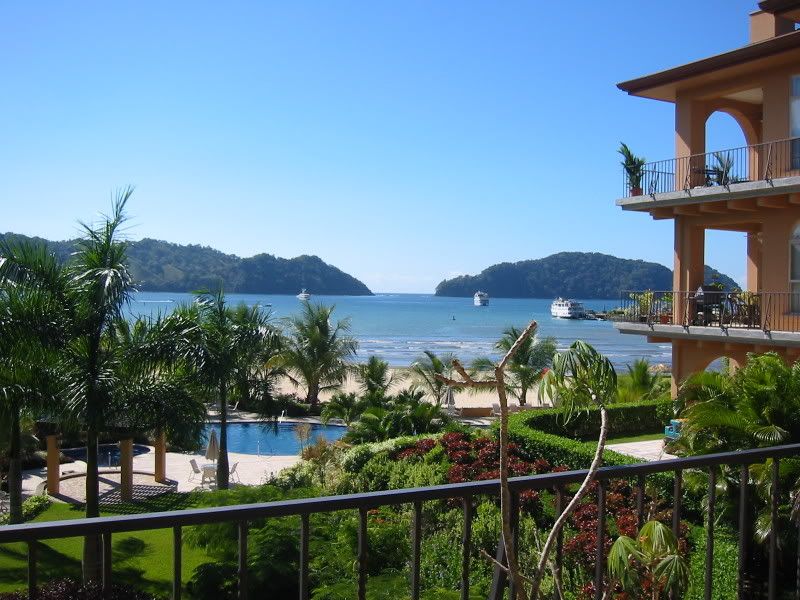 here's the deal: in san Jose... place to go is the hotel Del Ray. it's the pink hotel on the left in this picture. ![]() in jaco beach, the place to go WAS the beetle bar. i've heard since that it has been shut down. a pity, if true. here's the comparison i tell people: --> a heinekin, at the bar, WITH gringo discount (that's what i call it, being a white american).... was 325 colones. it's between 420-460 colones to a dollar. so that means their import beer is less than a dollar. the only ones there that have a concept of $$ is... the.. umm... entertainment. ;) anyway, the place to stay near jaco is los suenos. here's what i woke up to: ![]() (like borat) NIIICE!!