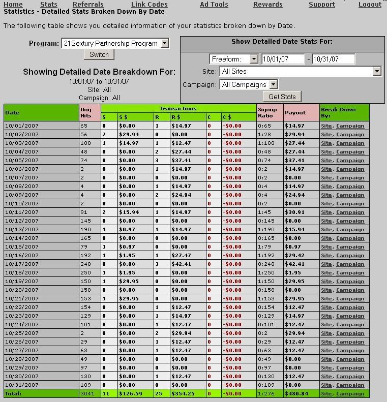 I used to promote 21SexturyCash. My stats say: