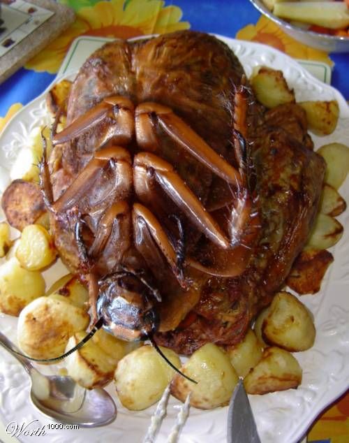 It was probably a nice piece of chicken before they chopped that bug in there.  |