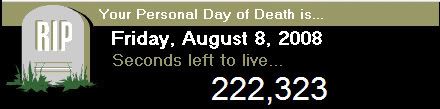 However there just might be a client willing to ressurect me to make sure his stuff gets done first. Humm My guitar? Ehh thats goin in the casket with me so no one gets that thing. The 3/4's the way built Cobra with a 351. Humm.. Guess that would have to be put on hold. Wouldnt know what to think or say to friends and family about my death other than "How embarrassing and I had fun." Maybe one of us should create an email service that basically sends email's to everyone you knew with a message of good bye. I can see that being a viable money making service! All email's are secret and only released upon confirmed death. Flat rate for the storage and the security of the messages. It could be branched out to attatch PDF's and Last Will's and Testament's being electronically delivered to designated persons upon death. Fascinating its late and I think I just thought of a multi million dollar idea unfortunatly I am to tired and certainly to lazy to pursue it. Can call it DeathMail.com or something.