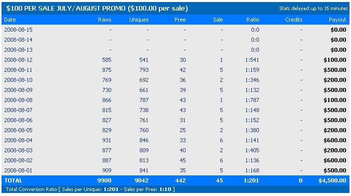 We have been running $75/sale for almost two years and now we're trying the $100. So the stats is for this period for Amateurmatch.com site. I have posted Stats from last month too.