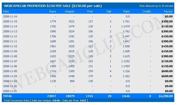 Best Webcam Site Ratio - $80 per Unique Hit (stats pic)