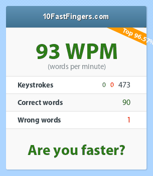 http://10fastfingers.com/speedtests/...3_15513_179020 2nd try http://10fastfingers.com/speedtests/...8_11317_179073  |