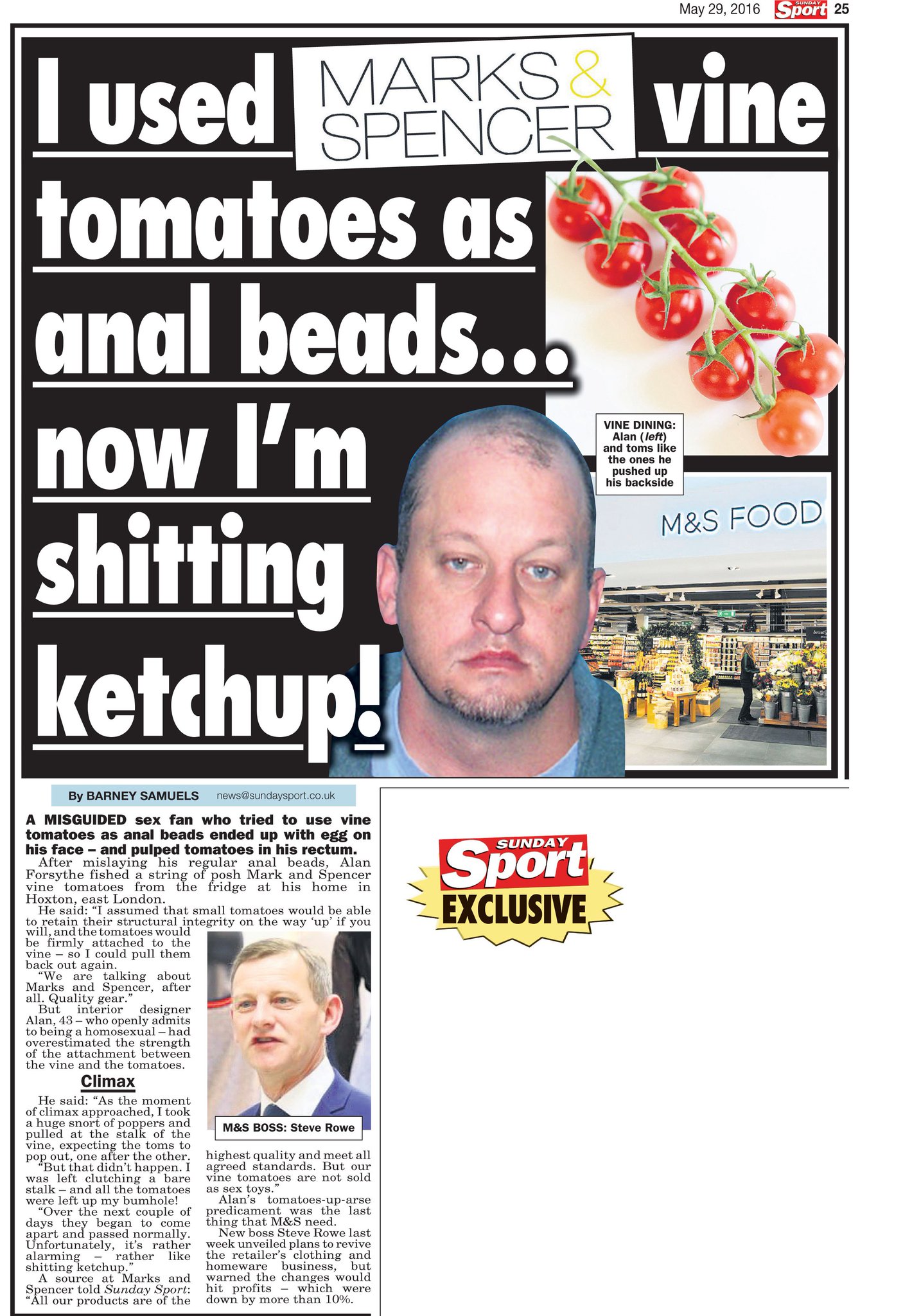 shitting out tomato sauce hmm... wheres the hotdogs people?