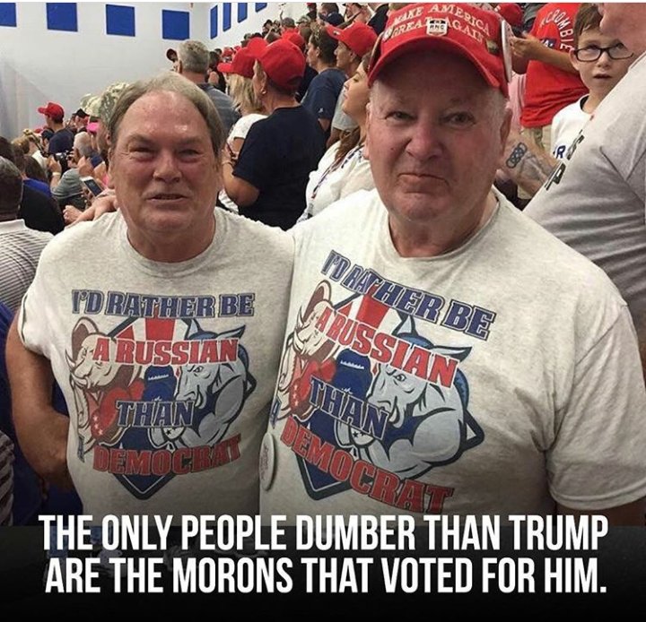 The topic of this thread is about Trump supporters at a Trump rally that say "I'd rather be a Russian than a Democrat" Post to that topic in this thread asshole or shut the fuck up |