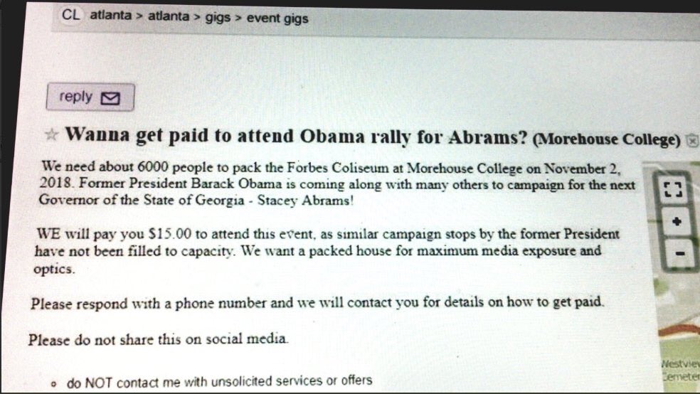 You really think if they were doing that they'd put all those details like "other events have not been filled to capacity"? It would simply say "$15 for event participation at Morehouse College. Email for more information." |