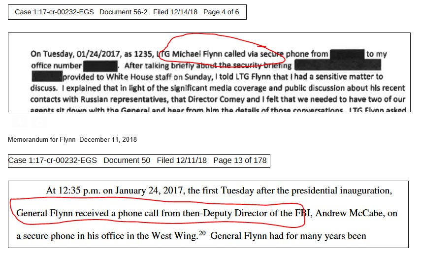 You missed the part where this is Strzok's statement of what occurred during HIS INTERVIEW WITH FLYNN as filed BY Mueller's team.. As in what the entire case is based on... Not only did they file it to the court incorrect. They CHANGED the 302 to this The other IS what actually happened filed by Flynn's lawyers... There's no discrepancy who called who.. Strzok called Flynn... For whatever reason the story changed on the edited/changed 302.. And HAD to file it to the court because the judge requested they do so.. Then he requested the original.. Likely because of this very issue.. It honestly doesn't make any sense as to why they would do this.... Perhaps they were going to try and sell Flynn contacting them in some "worried" state and they couldn't go back in and correct it later?? |